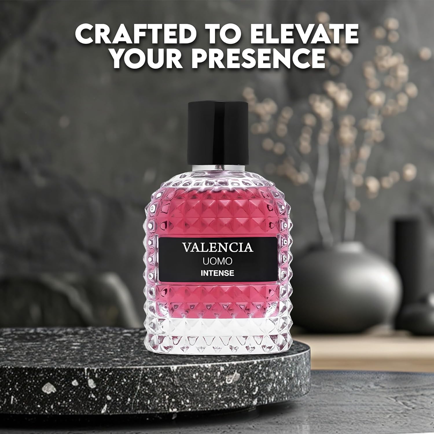 Valencia UOMO Intense for Men Eau De Parfum - Amber Fougere Fragrance Top Notes of Vanilla Bourbon Mid Tone of Lavandin Create Spicy & Woody Aroma - Base Scent of Smoked Vetiver