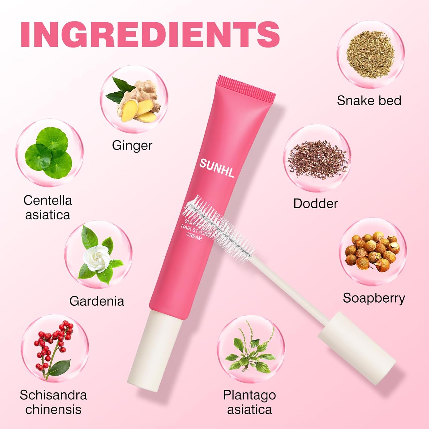 Sunnyholiday Styling Cream for Hair, Taming Wand 3-in-1 Formula Controls Flyaways, Smooths Frizz & Styles Edges Lightweight Hold, No Flaking, Slick Back Hair Products for All Hair Types (0.6 oz.).
