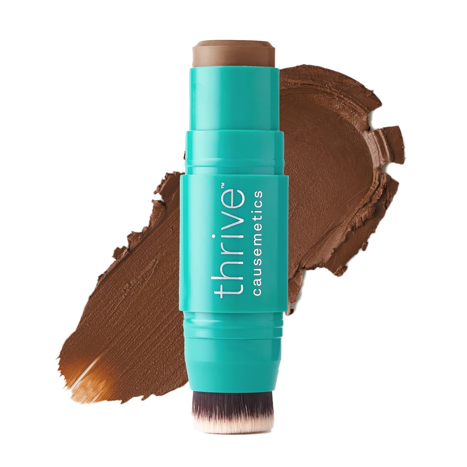 Thrive Causemetics Triple Threat Color Stick: Cream Bronzer & Contour Stick with Vitamin E, Evening Primrose Oil, Waterproof Smudge Proof Face Makeup Formula, Senait (Tan Golden)