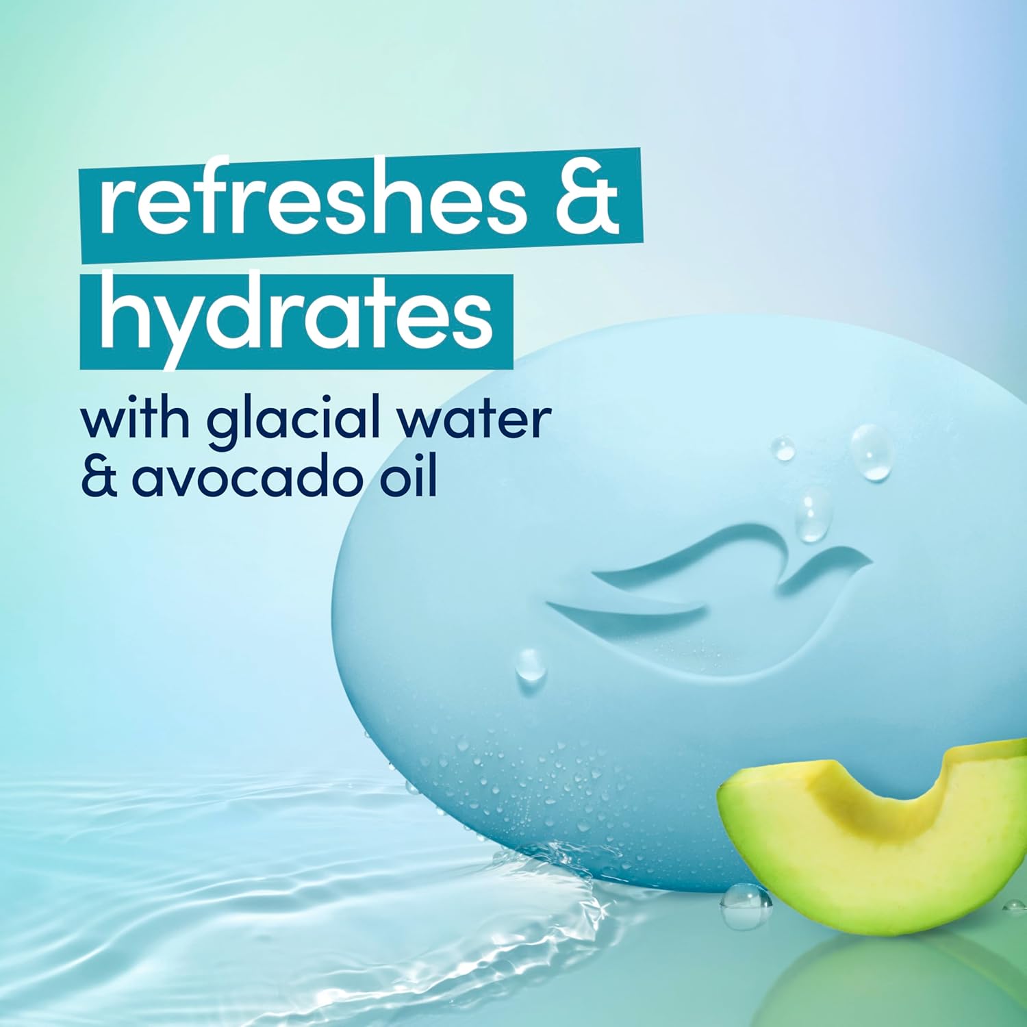 Dove Beauty Bar 6 Pack Hydrating with Glacial water & Avocado oil Cleanses & Hydrates 3.75 Oz