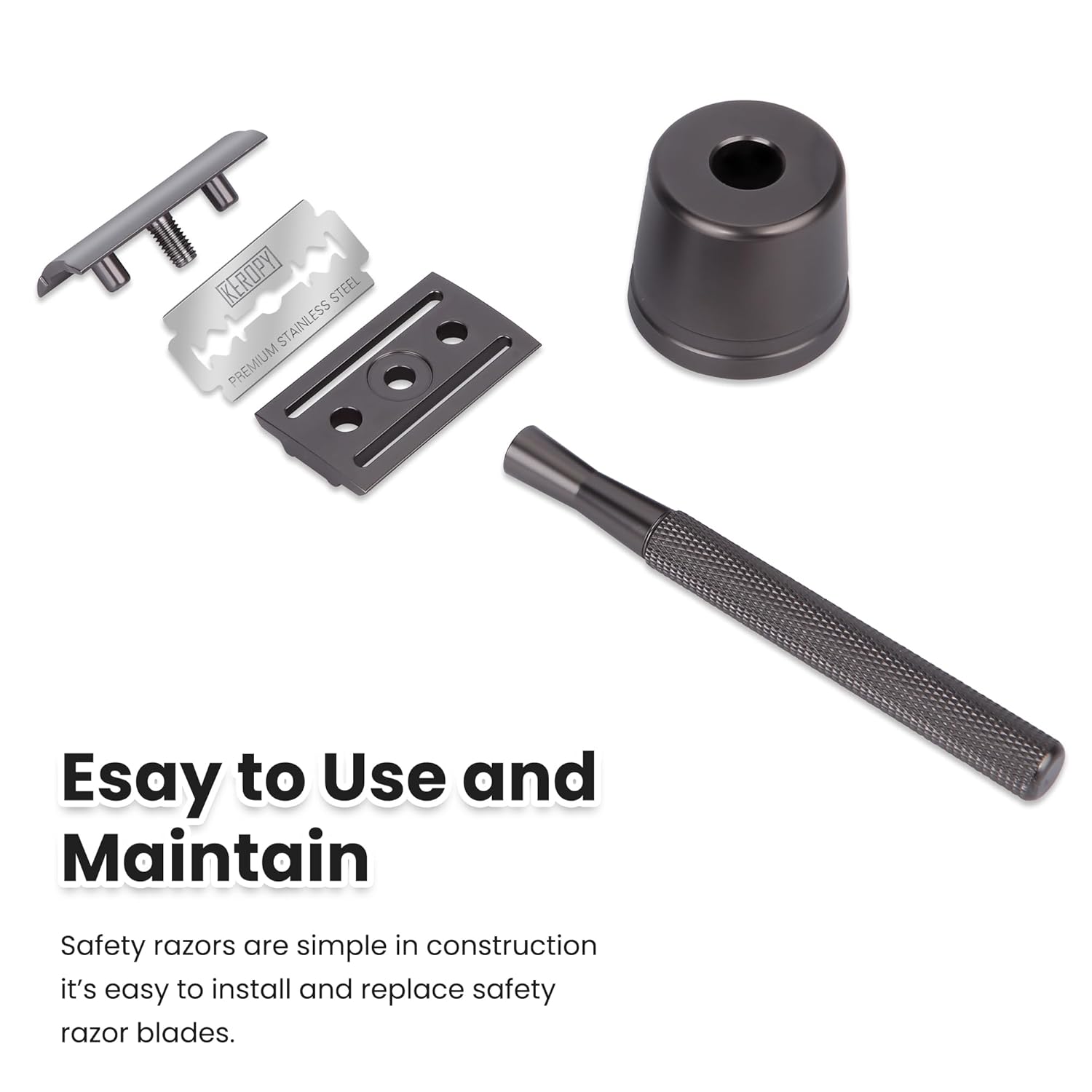 - [Comfort shaving degree]: Keropy Safety razor made of Zinc alloy, designed for lifetime use, Double-sided safety razors provide a very smooth shaving experience can perfectly achieve shaving comfort and shaving clarity, almost no need to use additional strength to increase the risk of scratching.