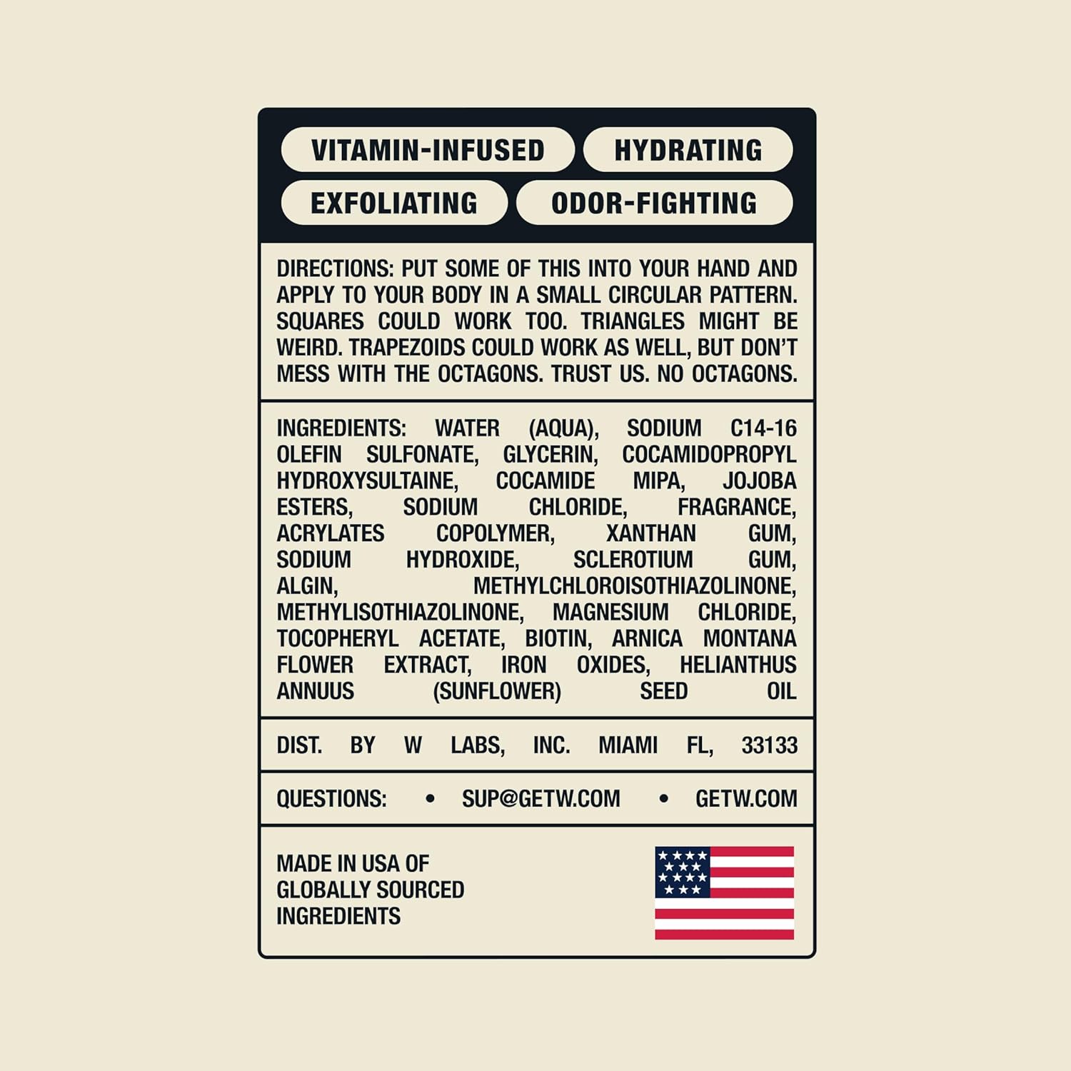 W By Jake Paul Exfoliating Body Wash for Men, Vitamin-Infused, Hydrating Shower Gel, Deep Woods, 18 fl oz