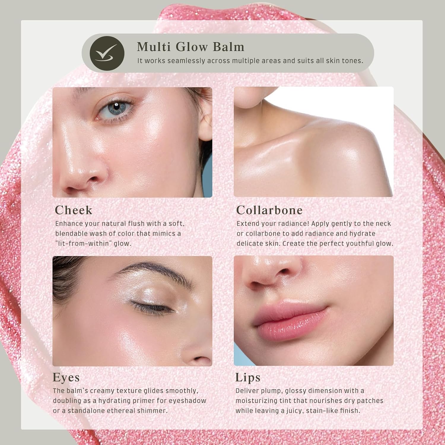- 【ILLUMINATES A RADIANCE FROM THE INSIDE OUT】The multi-purpose makeup cream can be used on cheeks, lips and eyelids. It creates a natural, healthy-looking glow in seconds, highlighting facial features of any skin tone and age.
