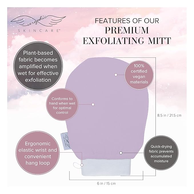 - Indulge in an At-Home Spa Experience – At Seraphic Skincare, we’re committed to offering premium exfoliating products at affordable prices. We invite you to immerse yourself in the luxurious experience of exfoliation and self-care at home by adding our Korean-style exfoliating mitts to your beauty routine for that glow you’ve been dreaming of!