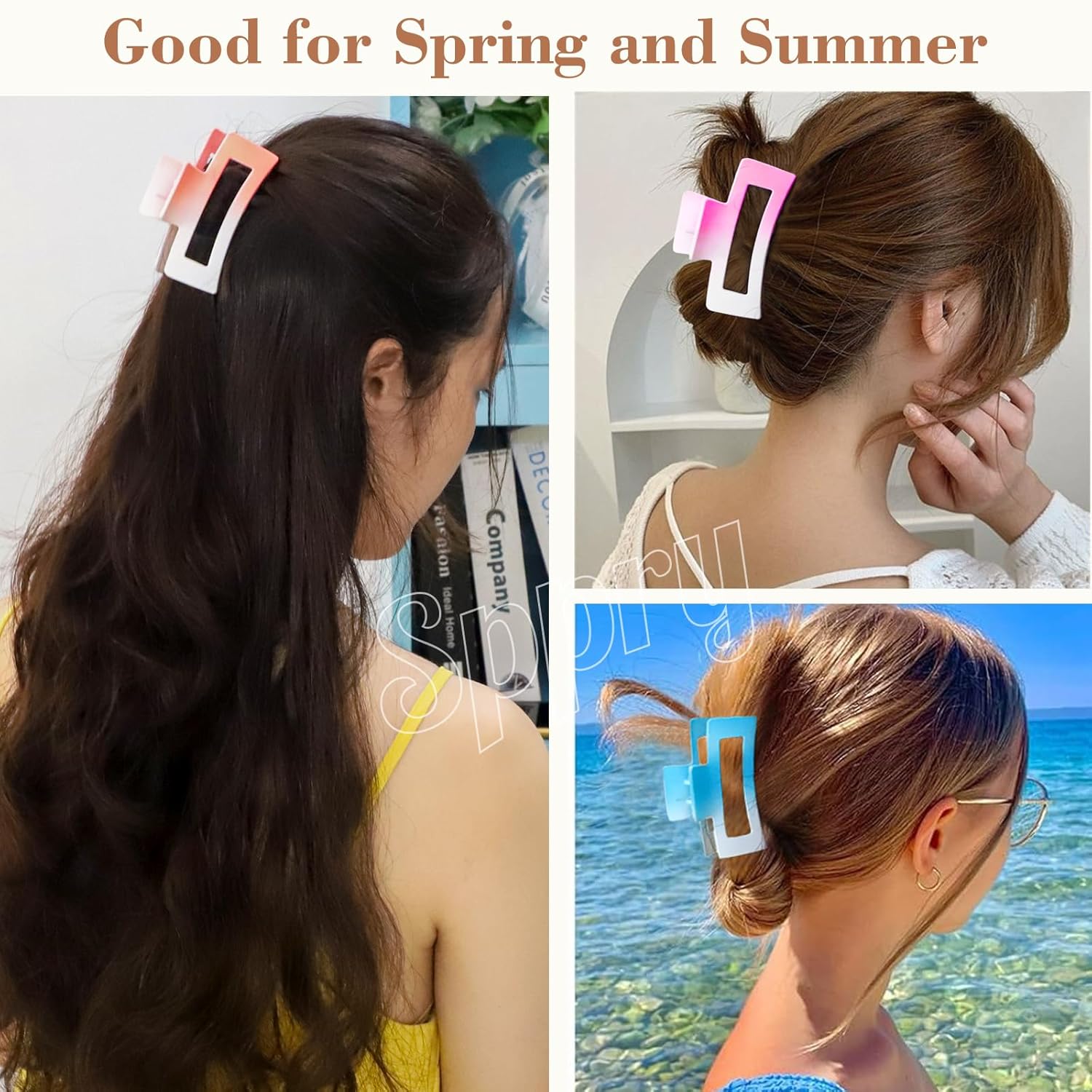 Medium Rectangle Matte Claw Clips for Women Thin Hair, Gradient Color, Set of 3 (Light Pink, Purple & Green)