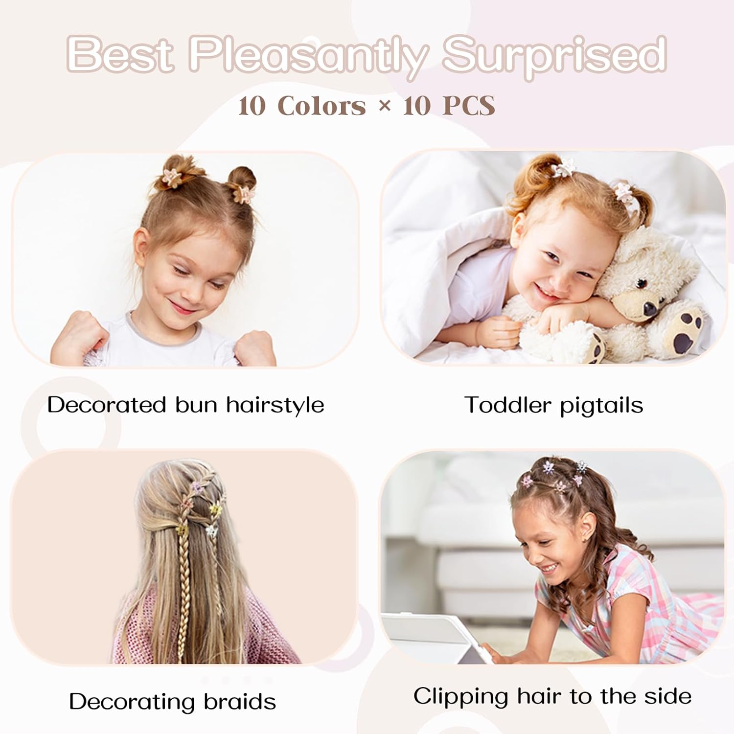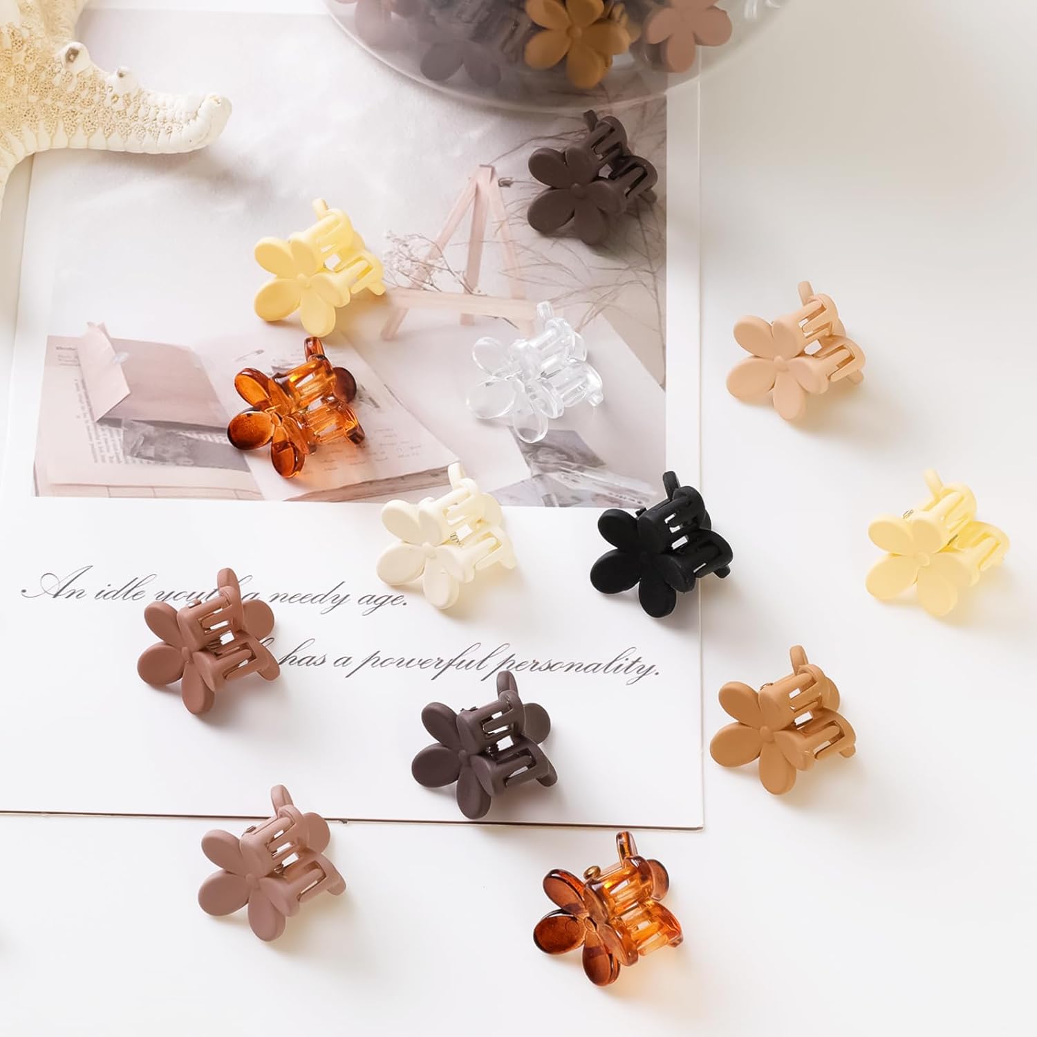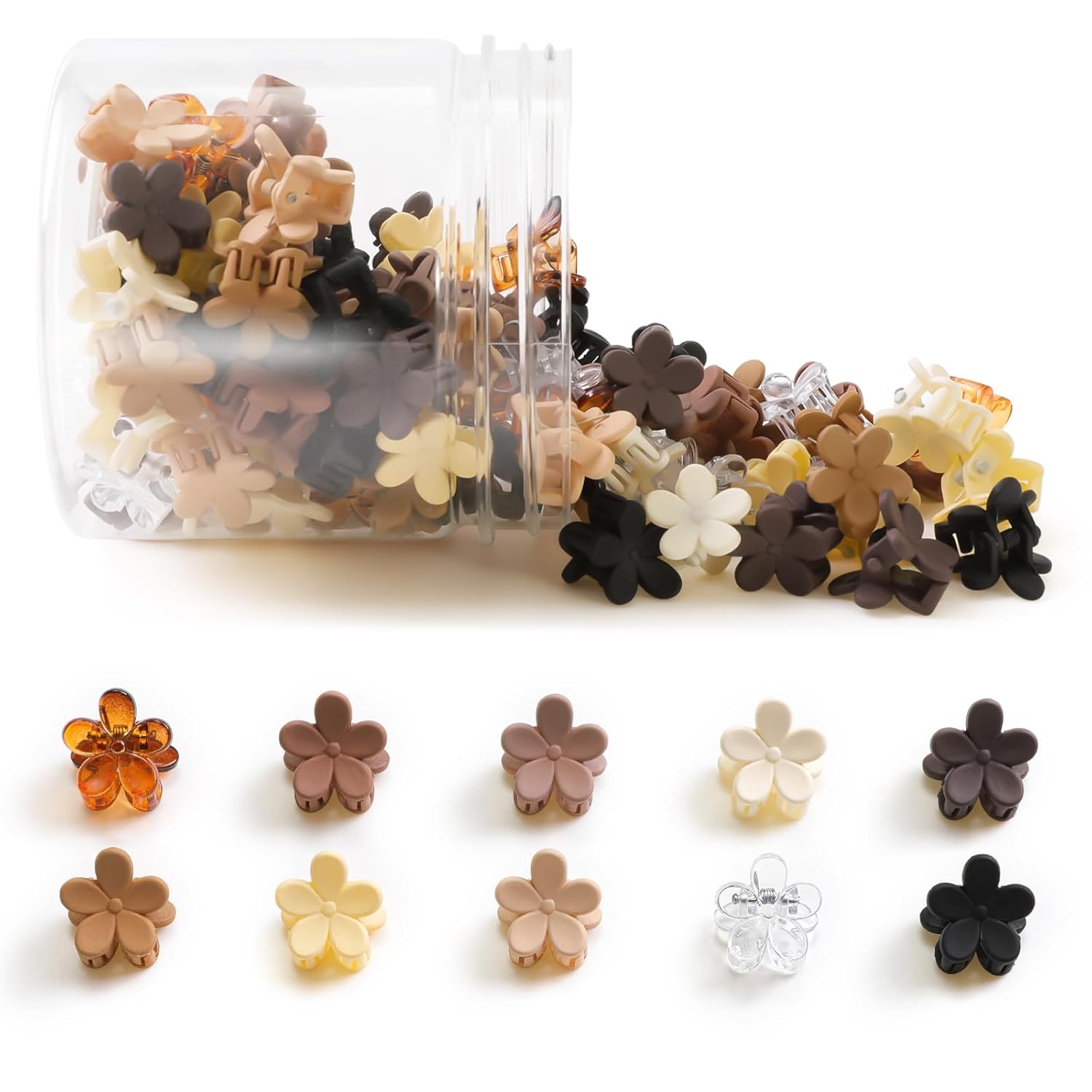 - 100 PCS CUTE HAIR CLIPS: The package include 100Pcs mini hair clips in 10 neutral colors, and 10 PCS of each color, our mini flower claw clips are designed to complement every hair hue. You can trust us to give you a varied selection for enhancing your daily hairstyle, outfit, and makeup look