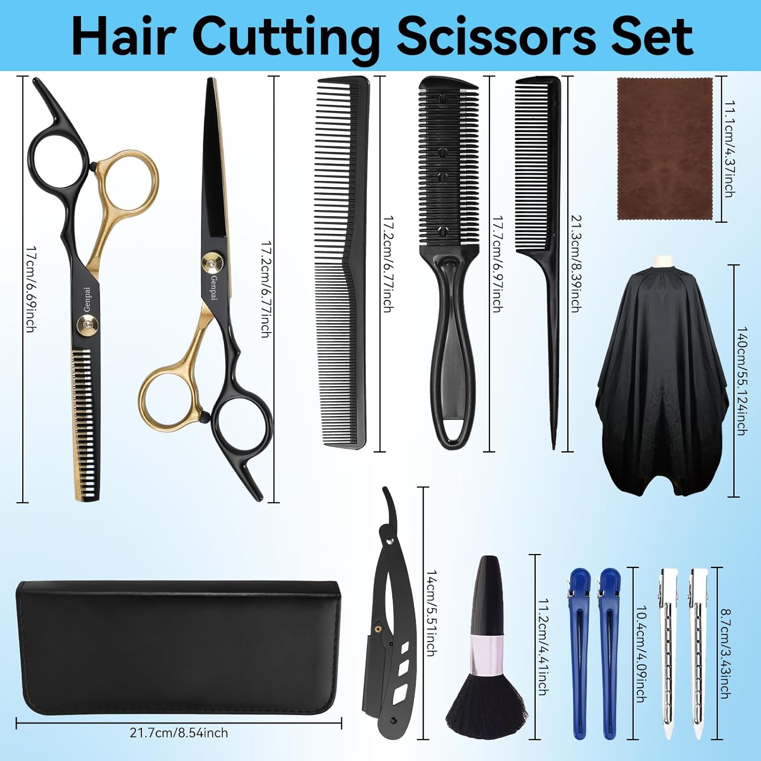 14-Piece Professional Hair Cutting Scissors Kit – Stainless Steel Hair Shears, Barber Scissors, Thinning Shears & Razor – Hair Cutting Kit for Men/Women/Kids – Barber Supplies & Accessories