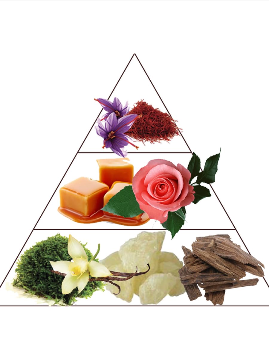 - A SWEET AND SENSUAL SCENT PROFILE: The scent opens with the warm radiance of saffron, followed by a heart of delicate rose and indulgent caramel. It settles into a rich and elegant base of vanilla, oak moss, musk, and woody amber.