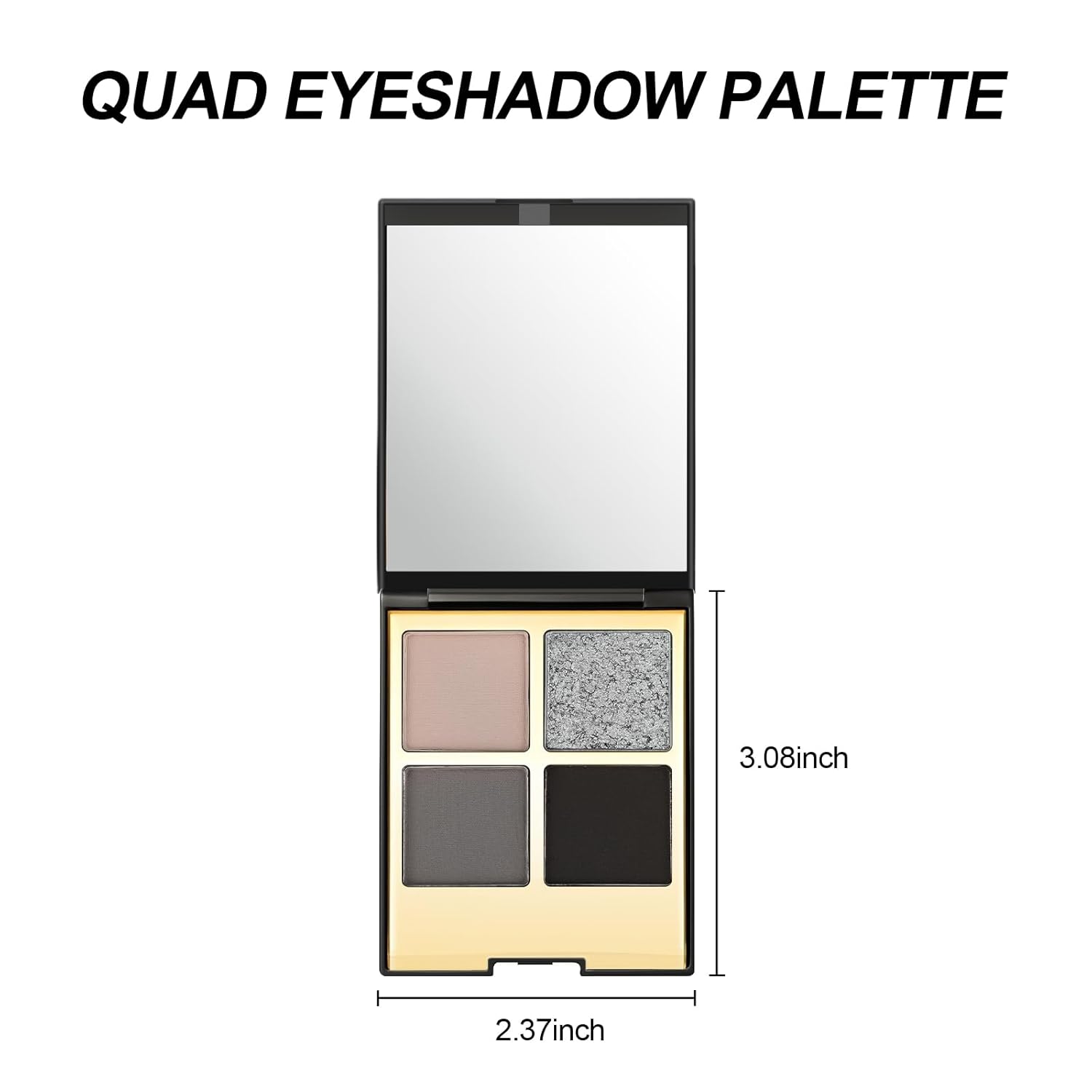 Erinde 4 Colors Eyeshadow Palette Eye Shadow Makeup, Matte Shimmer Metallic Taupe Gray Black Sliver Smokey Eyeshadow, Long Wearing, Velvety Pigmented Blendable, Quad Eye Shadow Palette, 01