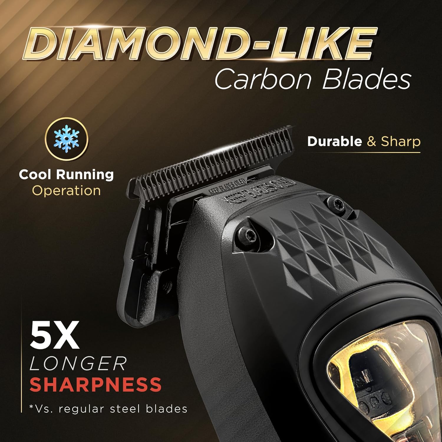 - 5X LONGER SHARPNESS - Featuring DLC blades, this hair trimmer offers diamond-like hardness, outstanding sharpness, and excellent friction resistance, lasting up to 5x longer than stainless steel blades.