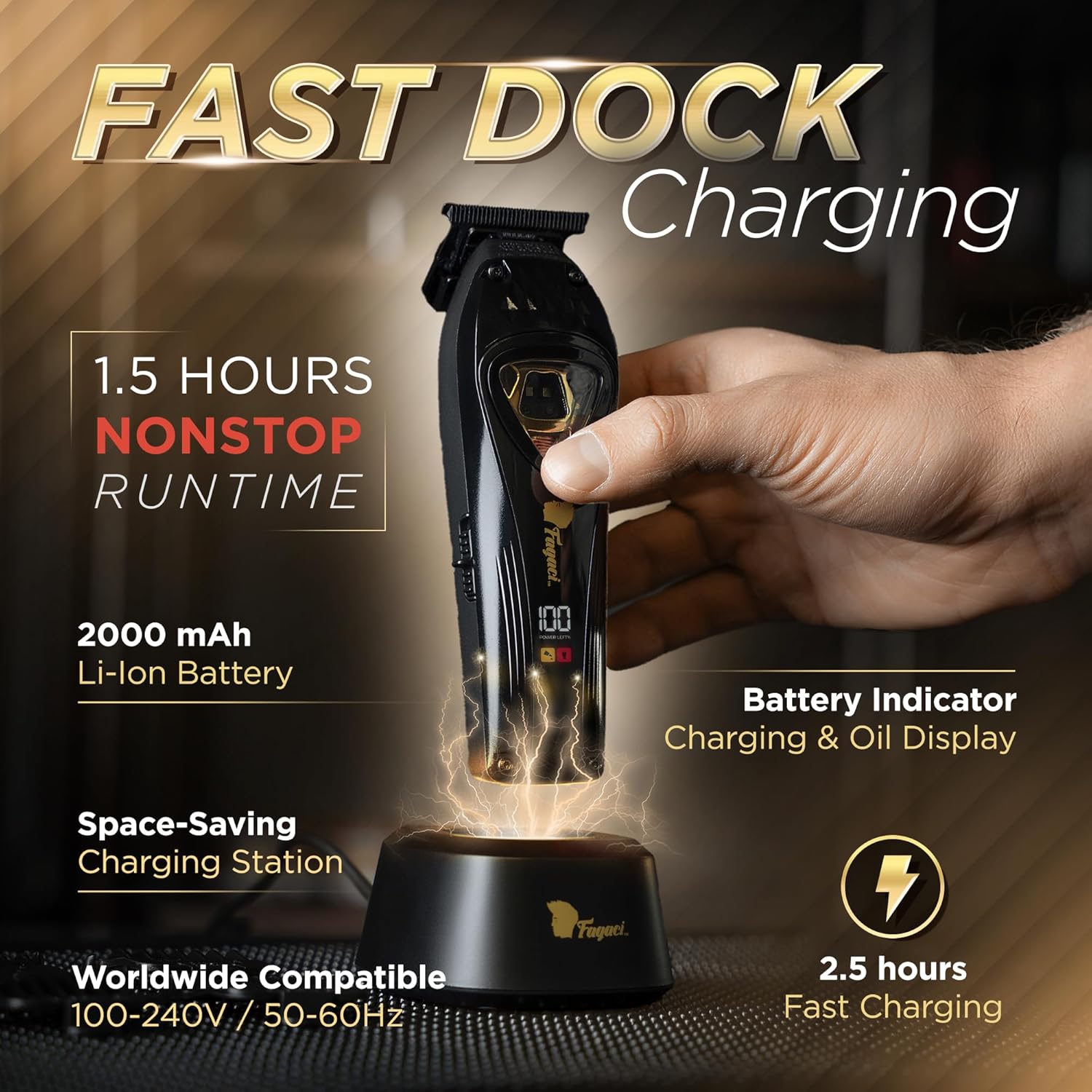 Fagaci Professional Zero Gapped Trimmer for Men, High Torque Vector Motor Cordless Beard Trimmer for Men, T Liners Professional Trimmers for Barbers with DLC Blades, Zero Gap Trimmers Barber T Blade