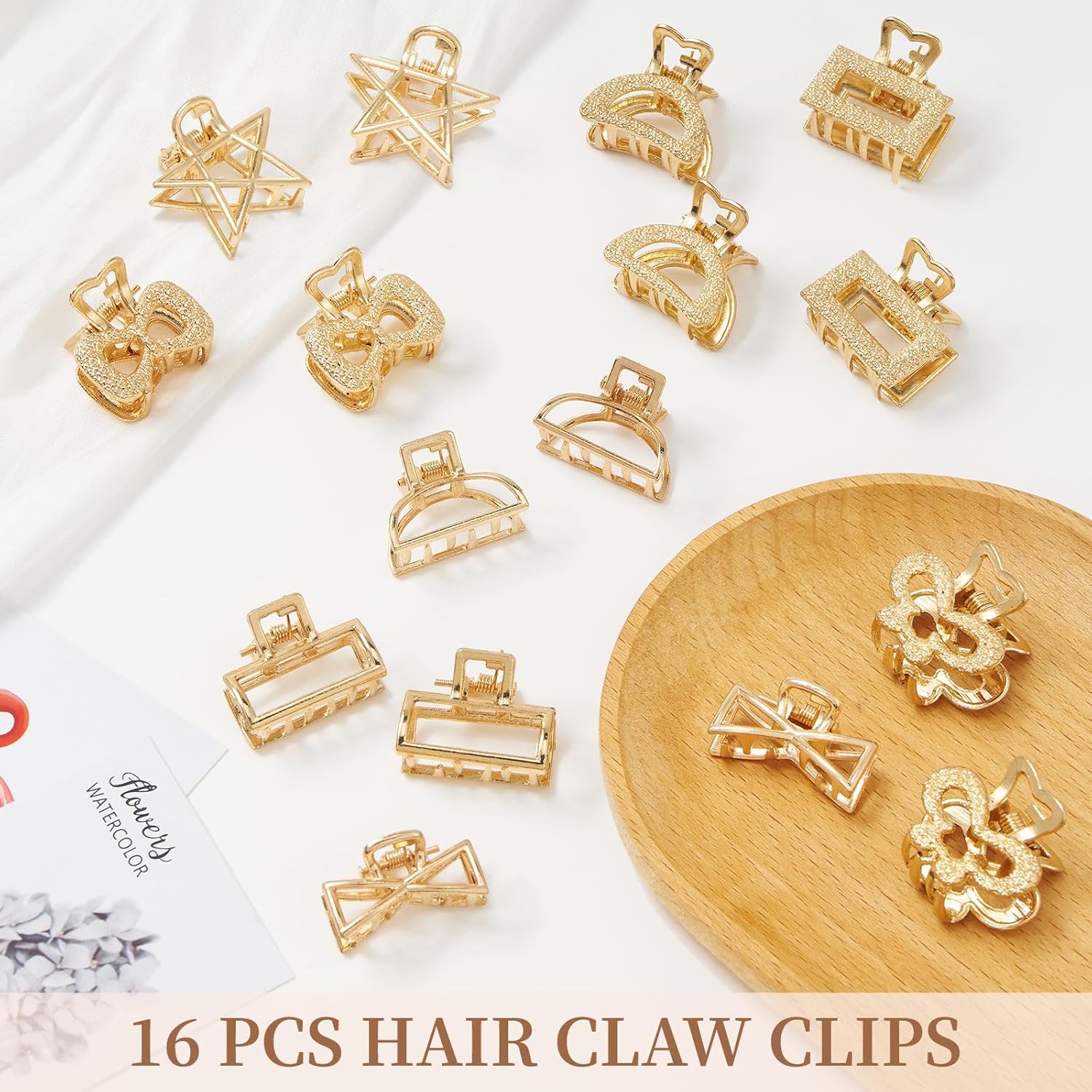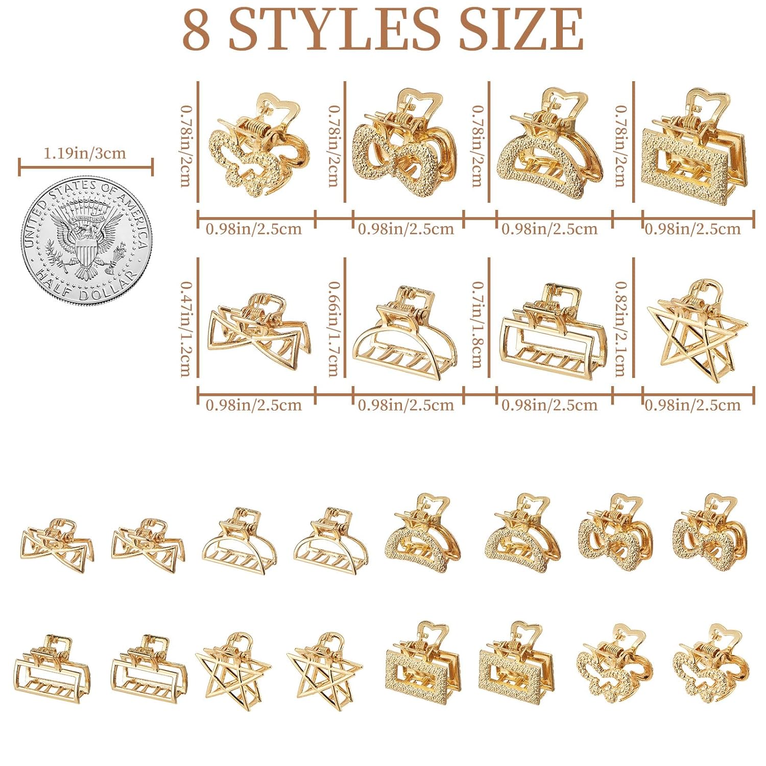 Mini Hair Clips for Women 16PCS 0.98" Gold Metal Small Claw Clips Women Non Slip Bangs Pins for Thick/Thin Hair(16PCS-Style 10(NEW))