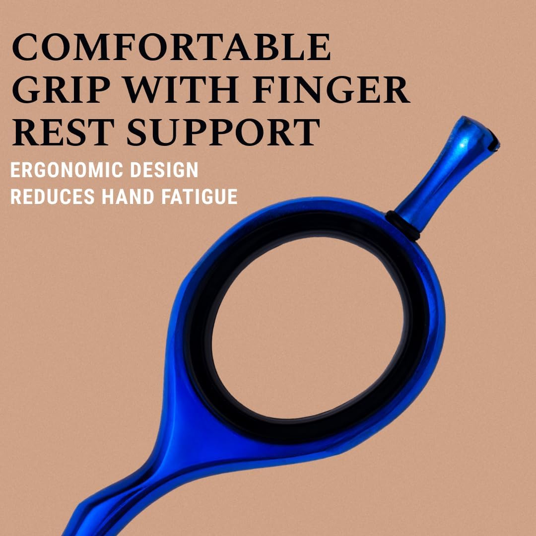 - Comfortable Ergonomic Design: The ergonomic design of these hair scissors professional includes a removable finger rest and adjustable tension knob to enhance user comfort. Rubber ring inserts provide a firm grip, making them suitable for both right and left-handed users