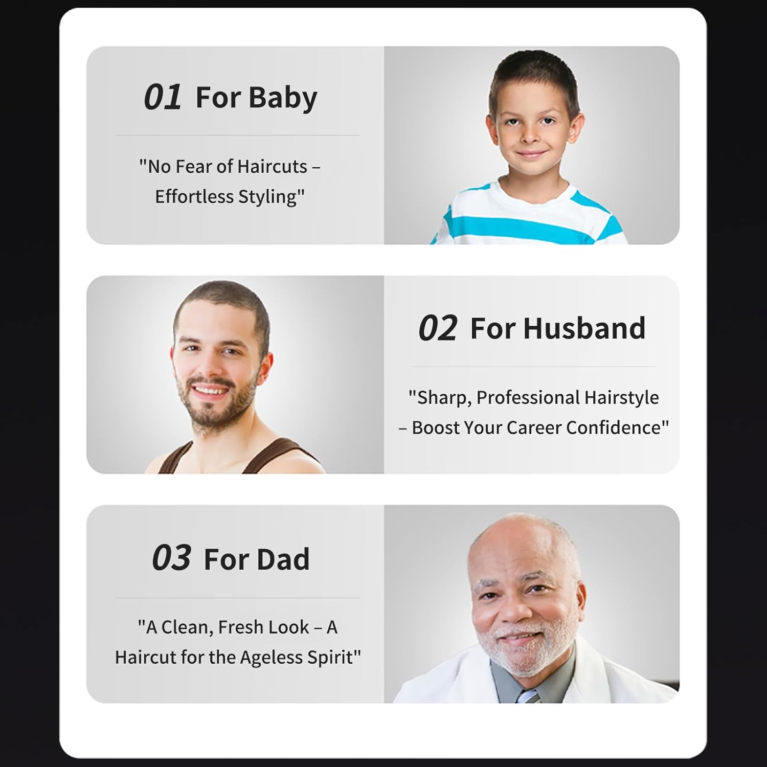 - 【360° circular blade, double-layer blade】: The blade moves back and forth at high speed within a small range, efficiently trimming hair. The blade is sharp, durable, and gentle on the scalp, enabling smooth and fast haircuts. Just be careful not to place your ears within the blade's circle. You can easily trim your hair at home without assistance. Multiple lengths are available, ranging from flat-top to round-top, making it easy to create various short hairstyles.