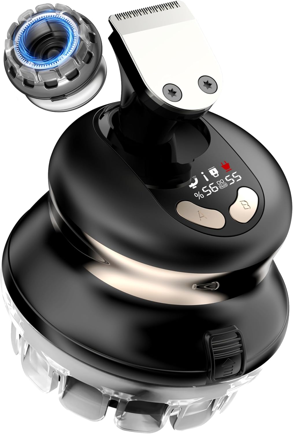 - 360° CIRCULAR BLADE FOR SMOOTH, EVEN CUTS: Ergonomic round blade design follows the natural shape of your head for effortless trimming. The 360° rotary blade moves smoothly in all directions to give you consistent, skin-safe cuts without pulling or irritation