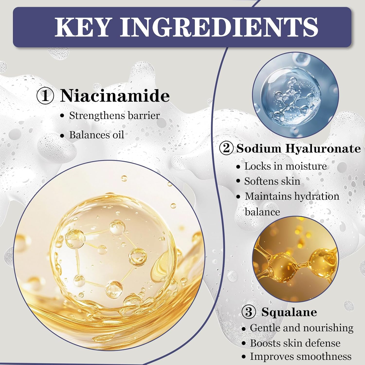 - Ingredients: Enriched with Niacinamide and Hyaluronic Acid to brighten the complexion, hydrate, and improve dullness. Squalane and Panthenol work together to strengthen the skin barrier and soothe and repair the skin.