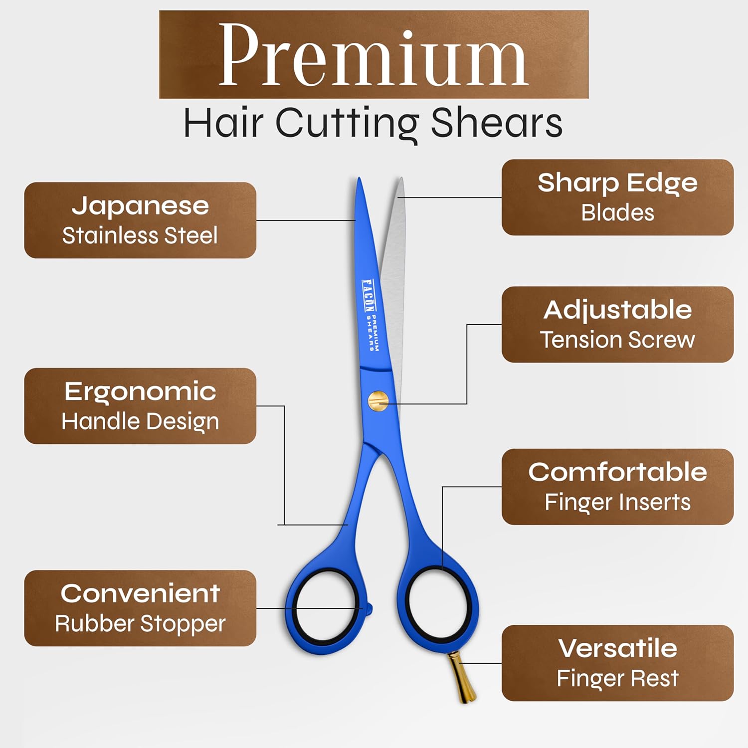 Facón Hair Cutting Scissors - Professional Hair Scissors 6.5 Inch Razor Edge Barber Shears Salon Hair Cutting Shears - Japanese Stainless Steel - Precision Cutting Premium Shears for Men, Women & Kids