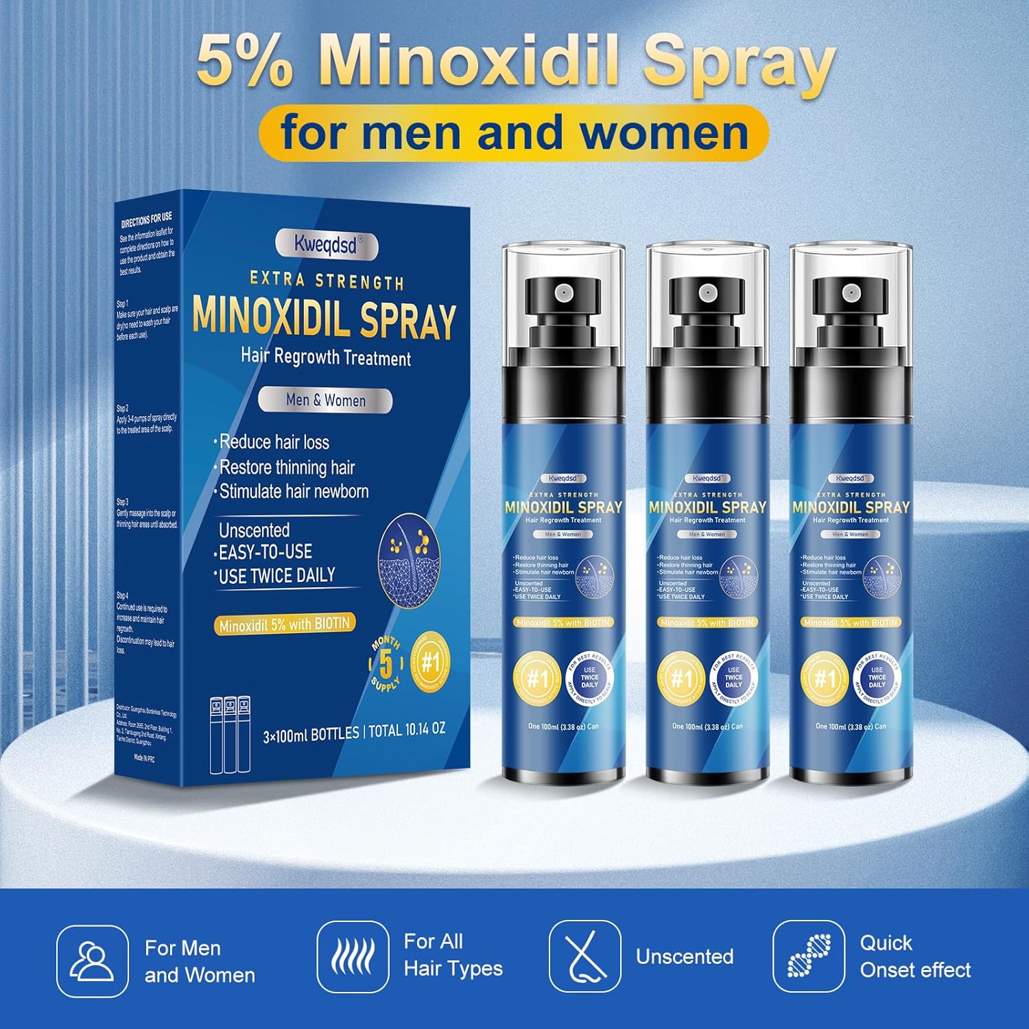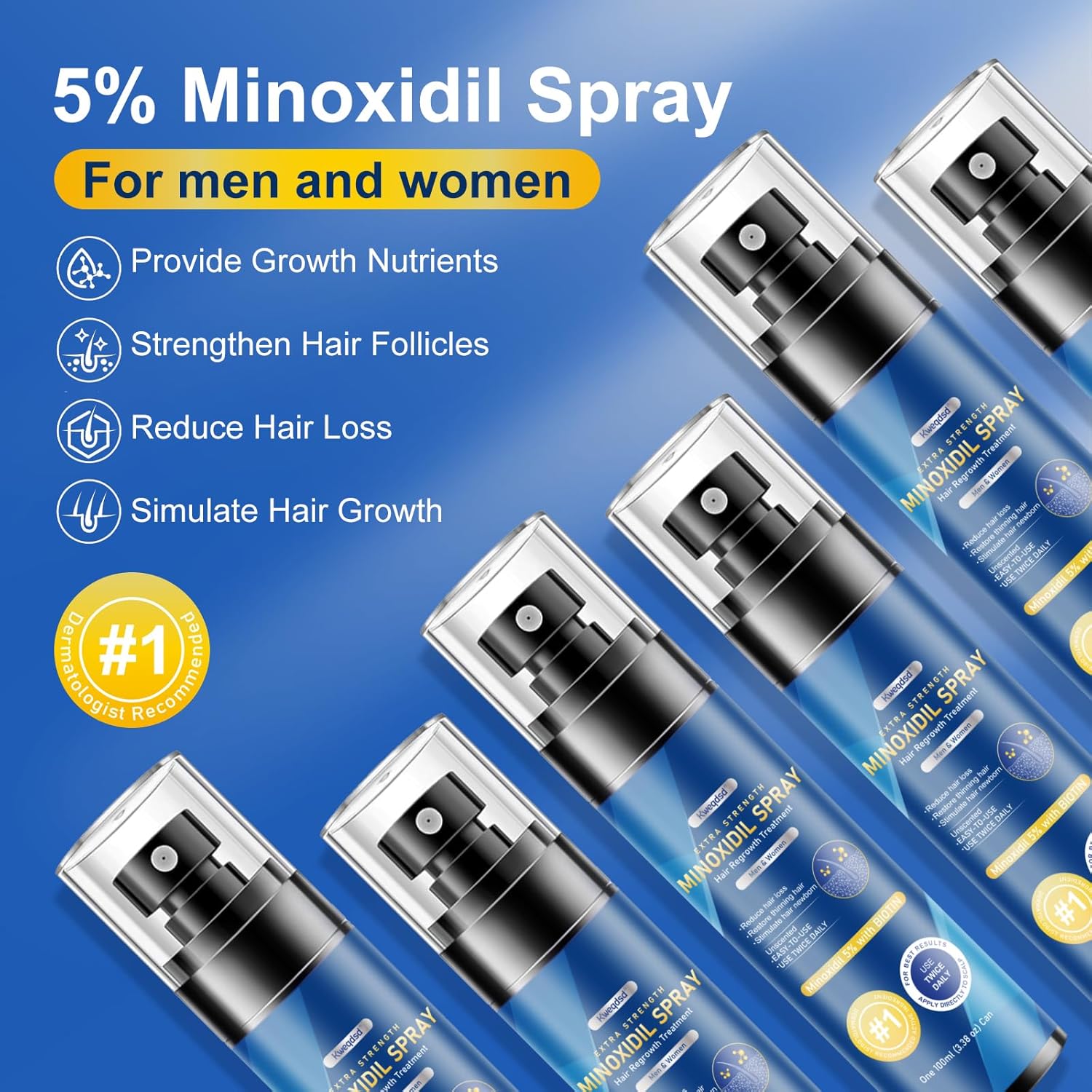 - CLINICALLY PROVEN 5% MINOXIDIL Spray : This minoxidil Spray for men works by reactivating hair follicles, providing visible results in both hair loss treatments for men and beard enhancement,This powerful combination boosts hair follicle activity and stimulates robust hair growth.After 2-3 months, you can expect to see thicker, fuller hair.