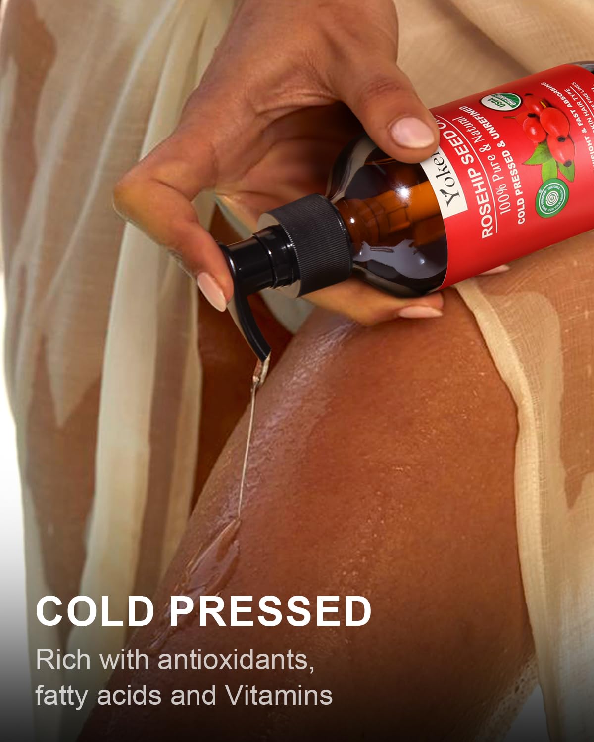 - Pure Natural & Non Irritant — Yoken organic rosehip oil made of natural rosehip seed, 100% Pure & single-ingredient, not contain irritating additives and fillers, provides natural skin care solutions. Rosehip seed oil mild in nature,can be used on sensitive skin.
