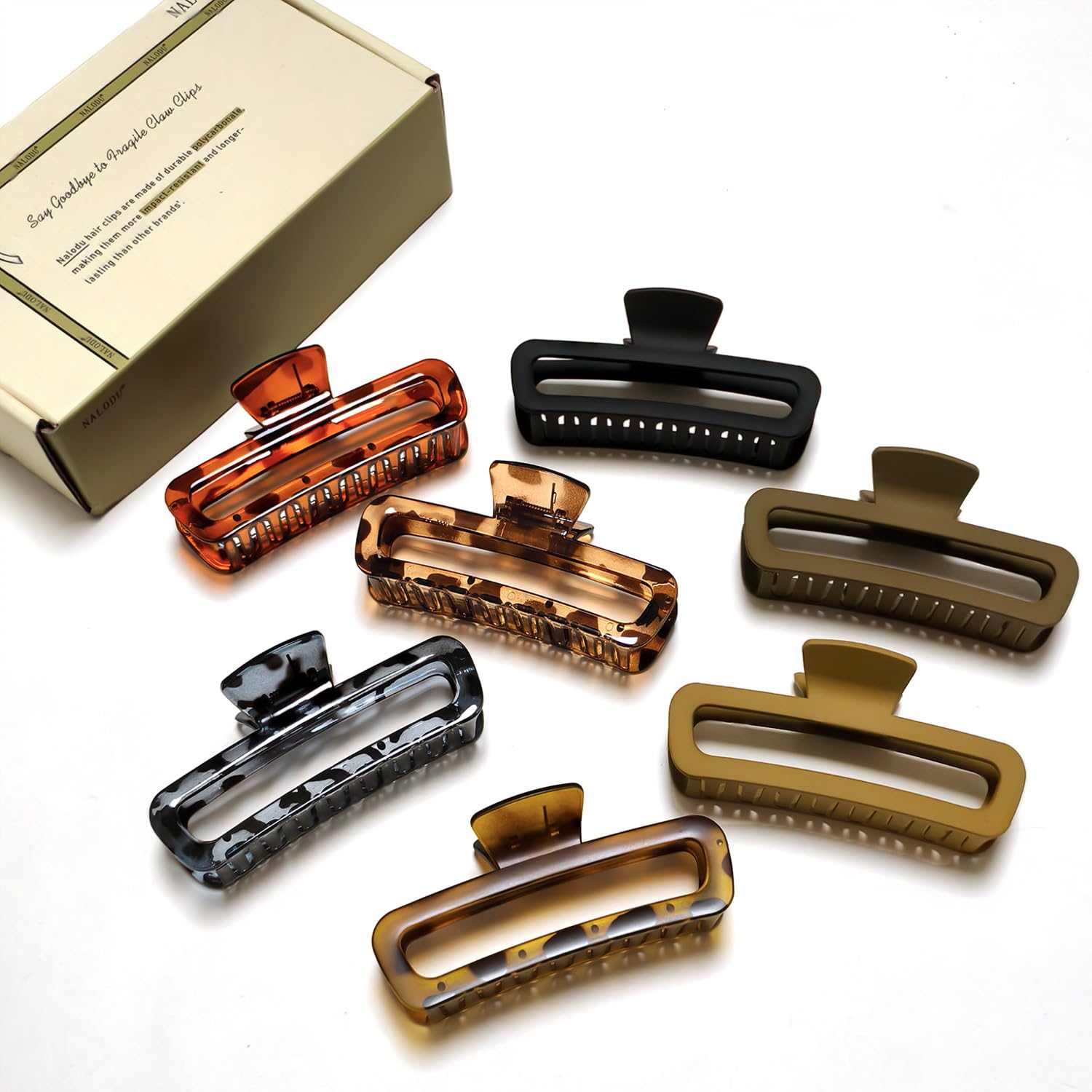 5 Inch Large Hair Claw Clips, No Slip Matte & Glossy Unbreakable Square XL Hair Clips for WomenThick Long Curly Hair, 7 Pack