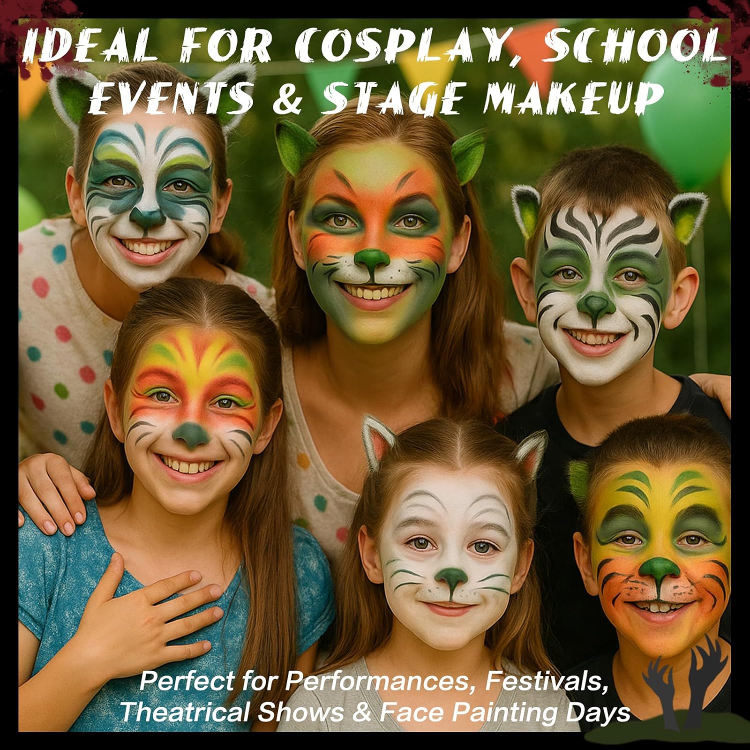 - 【Skin-Safe & Multi-Purpose】Formulated with non-toxic, vegan, and paraben-free ingredients, this cruelty-free paint is gentle on all skin types. Great for kids, adults, beginners, and professionals. Can also be used as an eye black stick for football, baseball, softball, or hunting camo.