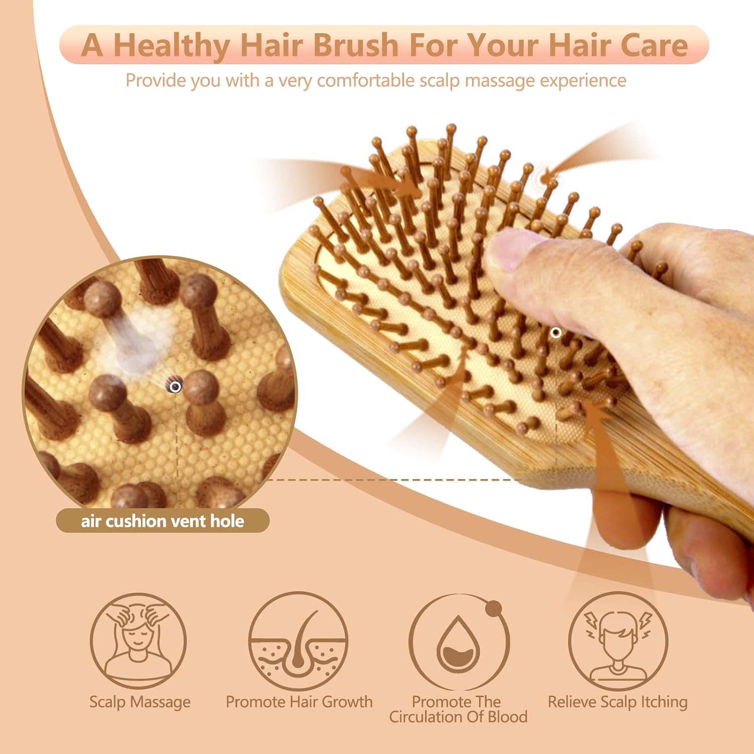 - Bamboo Hair Brush & Scalp Massager: Natural bamboo paddle brush whith a cushion design stimulates hair growth while gently massaging scalp.It has the dual effects of scalp massage and hair growth. Perfect for men, women and kids with all hair types (curly/wavy/thick/fine).
