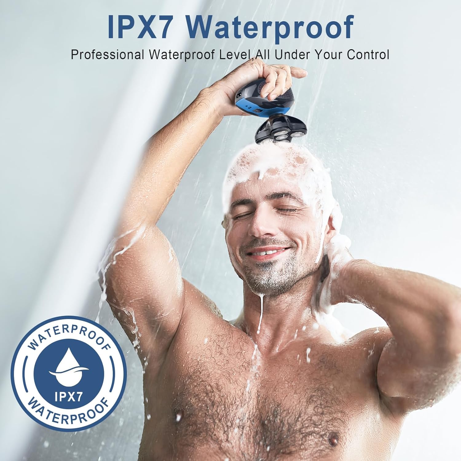 - 【IPX7 Waterproof and Wet & Dry】- Men's head shavers are IPX7 waterproof throughout, providing you with a comfortable dry shave or a refreshing wet shave with shaving foam, 100% waterproof all over, safe to use in the shower under running water, enjoy shaving in the shower, and equally perfect whether you use the gel/foam wet or dry shave. The removable and washable head allows you to easily clean directly under the tap.