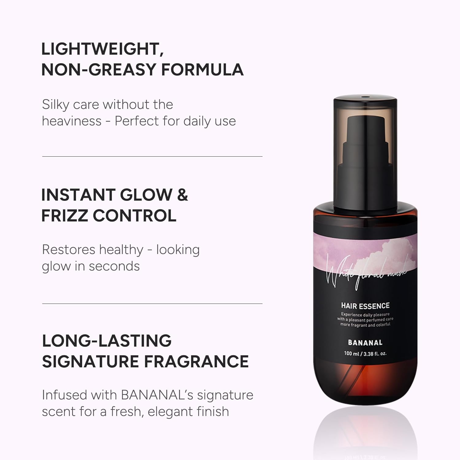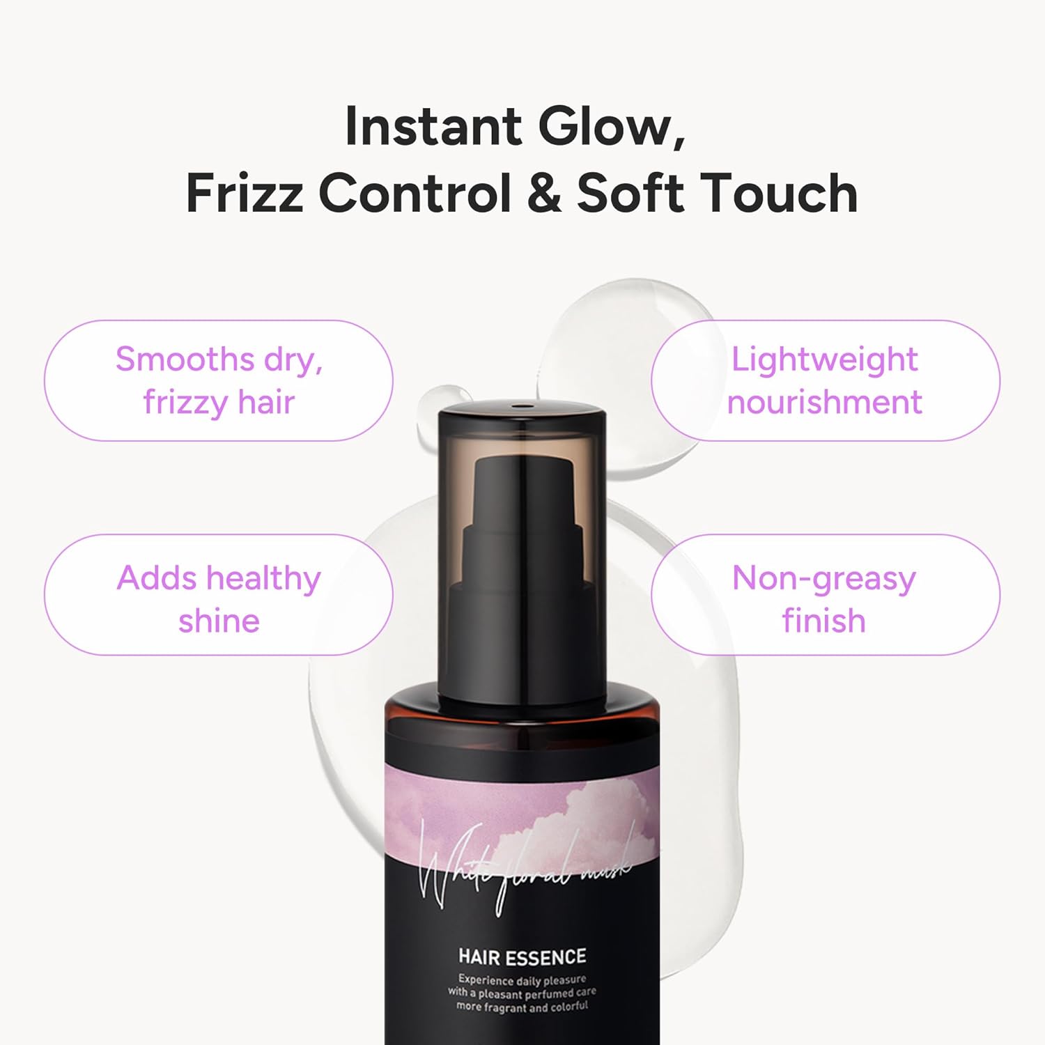 Perfumed Hair Oil & Serum 2-in-1 – Korean Essence Oil for Frizzy, Dry, Damaged Hair & Glass Hair Shine – Argan Oil & Amino Acids – Sulfate & Paraben-Free – White Floral Musk, 100ml / 3.38 fl oz
