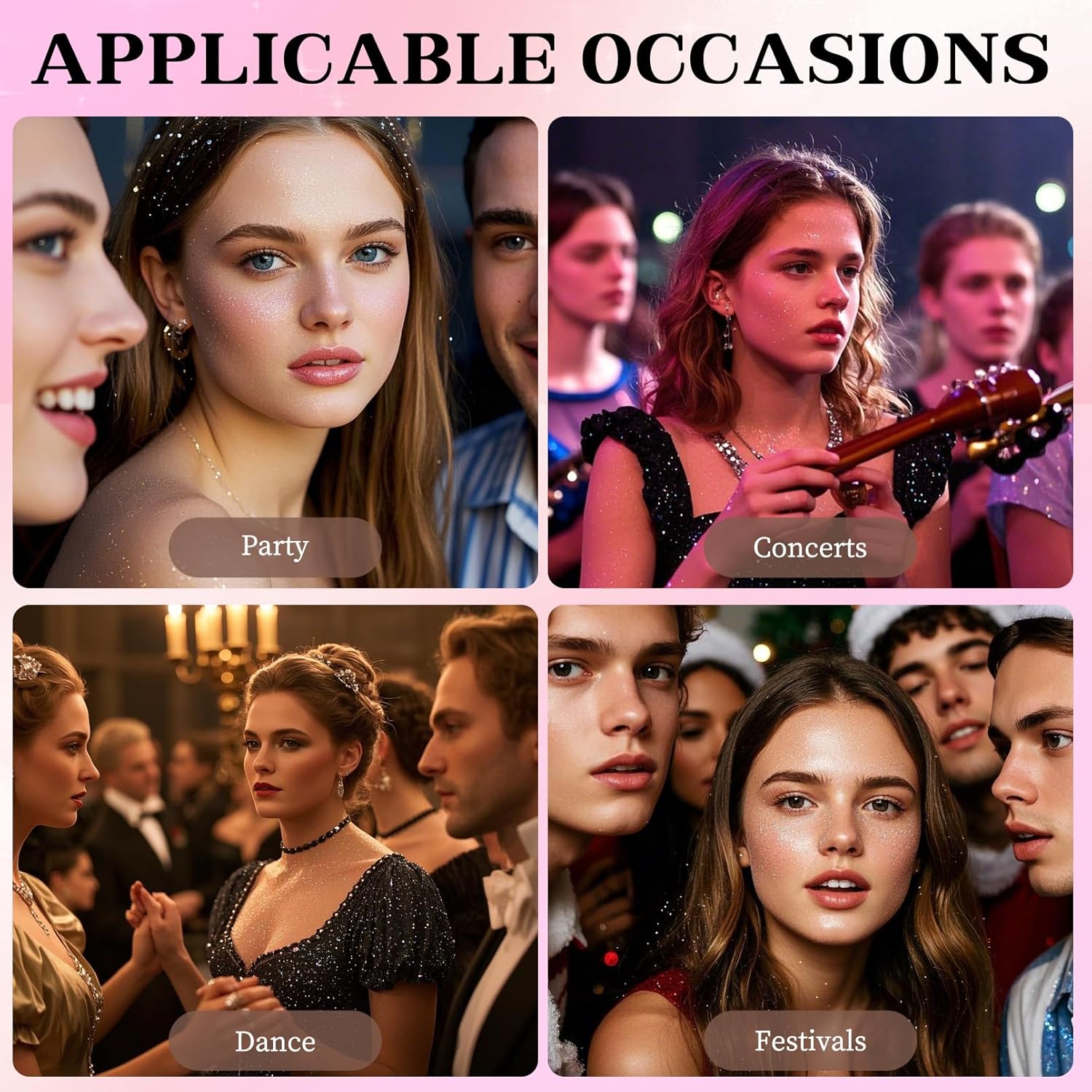 - Multi-Purpose Glitter Spray: Our body glitter spray is made of glitter particles, delivering a charming shimmer effect. You can spray it on your body, hair, face, skin, and even clothes. It will make you the center of attention under the lights at parties or nightclubs
