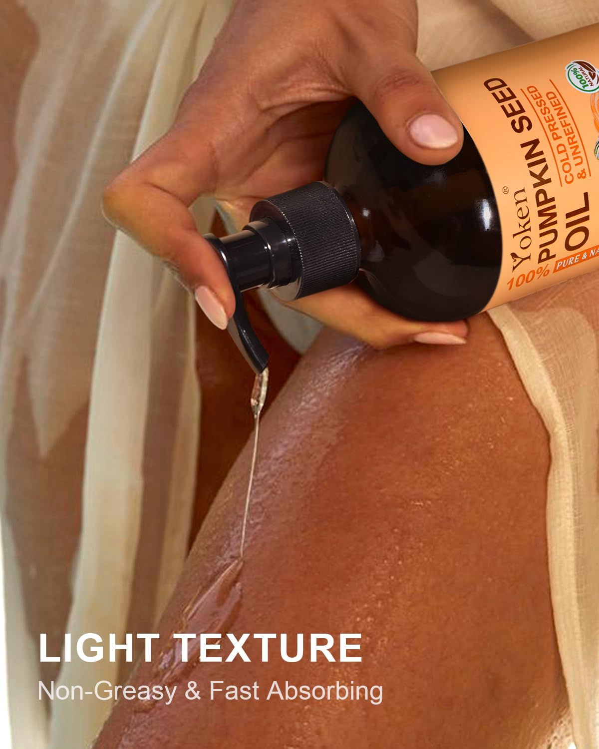 - Nutrient-Rich Formula: Yoken Cold-Pressed Pumpkin Seed Oil is gently extracted to help preserve its natural nutrients. Free from hexane and additives, it's rich in antioxidants, vitamins A & E, and fatty acids for skin and hair care.