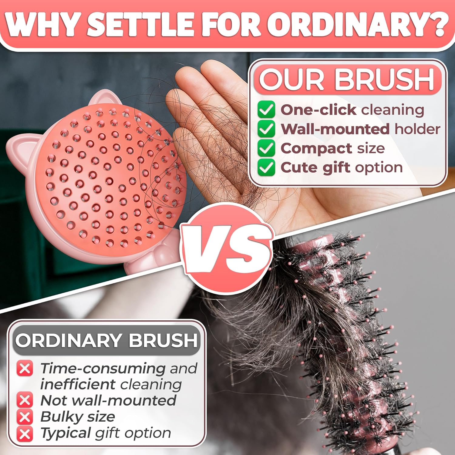 - Magnetic Wall Mount: A hair brush easy clean has a wall‑ready mount which keeps the retractable brush hair upright on mirrors or tiles, saving space and keeping clean brush hair aired