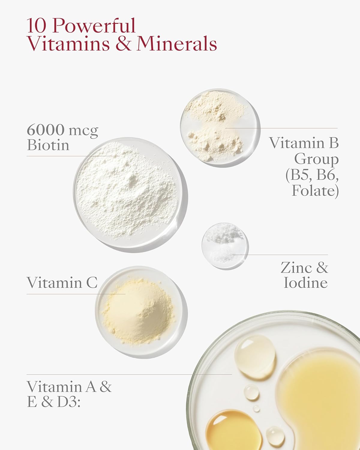 - Hair, Skin & Nails Support – Packed with 6,000 mcg of biotin to strengthen nails, improve hair growth, and support radiant skin from within.