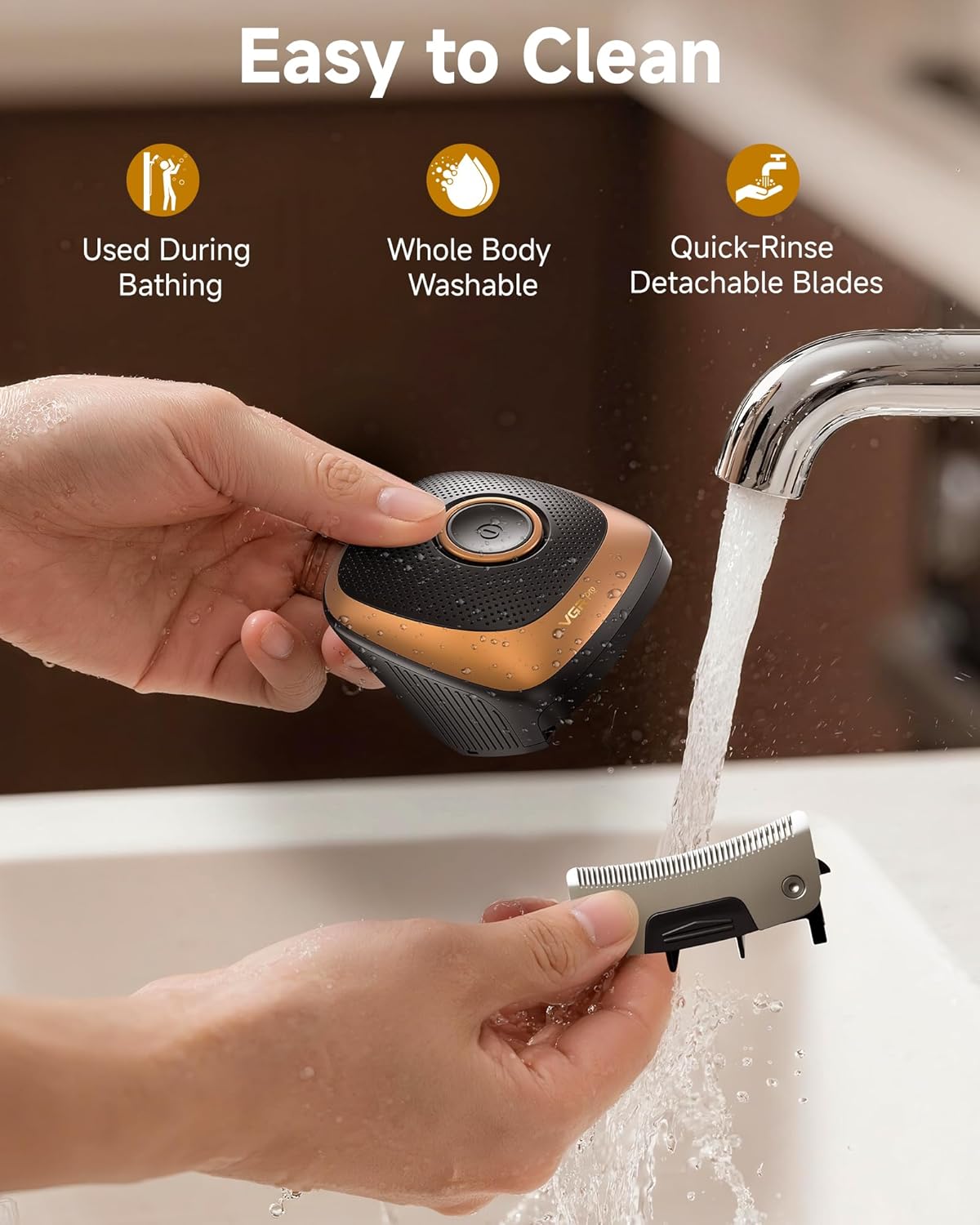 - Used During Bathing & Easy Cleaning – Whole body washable design allows safe use even in the shower or bath. The quick-rinse detachable blades make thorough cleaning effortless, ensuring a hygienic grooming experience every time. The cordless design adds convenience to every grooming routine.