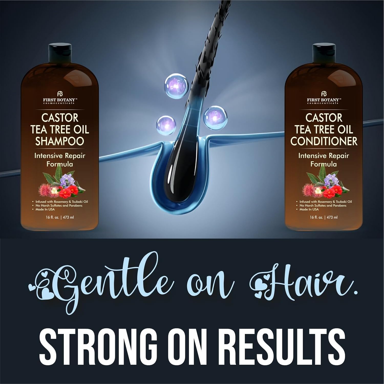 Castor Tea Tree Shampoo Conditioner - An Anti Hair Loss Set Thickening formula For Hair Regrowth, Anti Thinning Sulfate Free For Men & Women Anti Dandruff Treatment - 16 oz