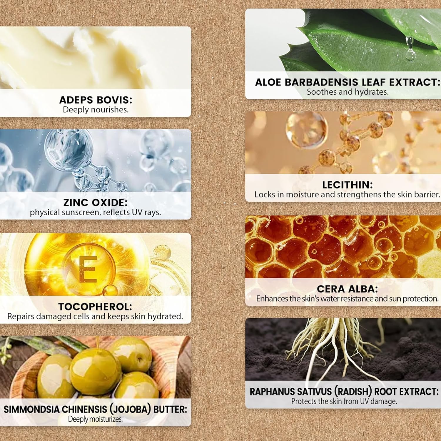 - 【Gentle & Nourishing Formula】: Our beef tallow for face is crafted with abundant natural constituents, rich in vitamins A, D, E, and K, plus essential fatty acids for deep hydration. This all natural sunscreen absorbs quickly without greasiness, leaving no white residue or clogged pores. Experience a natural, gentle touch that’s kind to your skin with every use, keeps skin healthy and protected