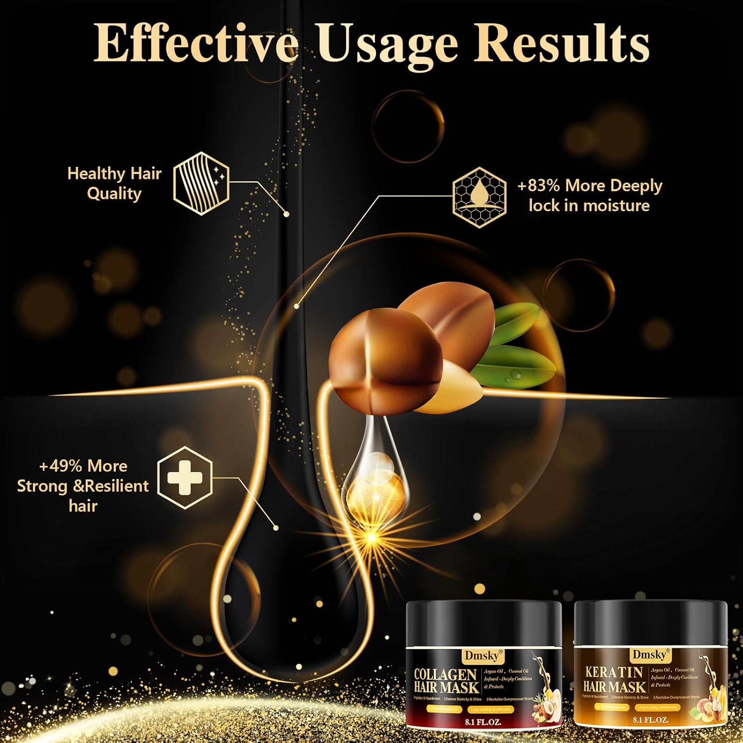 - Collagen Hair Mask & Keratin Hair Mask-Dmsky hydrating hair mask,add moroccan nut oil,coconut oil,shea butter oil,drynaria fortunei extract strengthens hair from within. it offers lasting moisture and effortless styling for your hair.