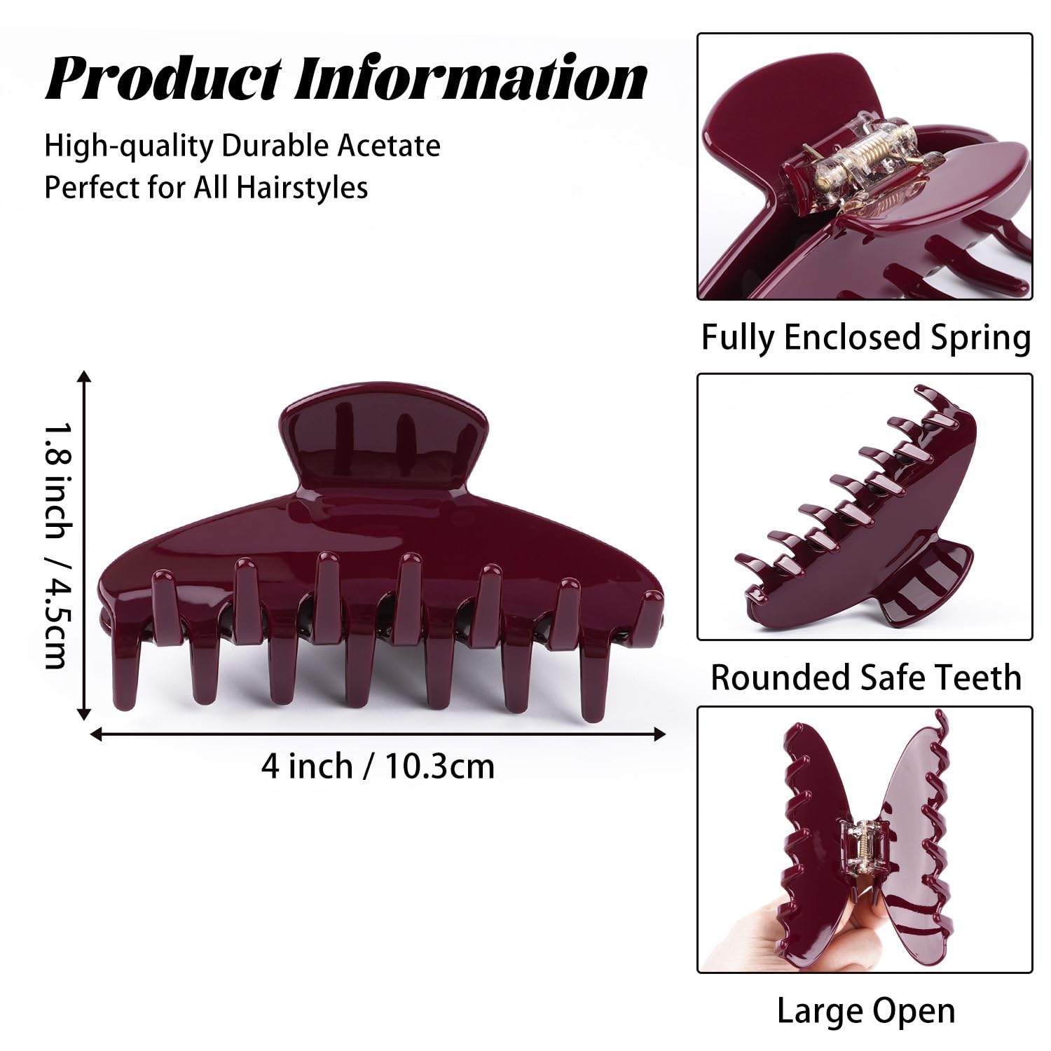 MAORULU Cute Claw Clip for Women – 4'' Large Acetate Hair Clips for Thick Thin Curly Long Hair, Durable Hair Clamps Non-slip Y2K Jaw Clip, Strong Hold, Stylish French Design (Wine Red)