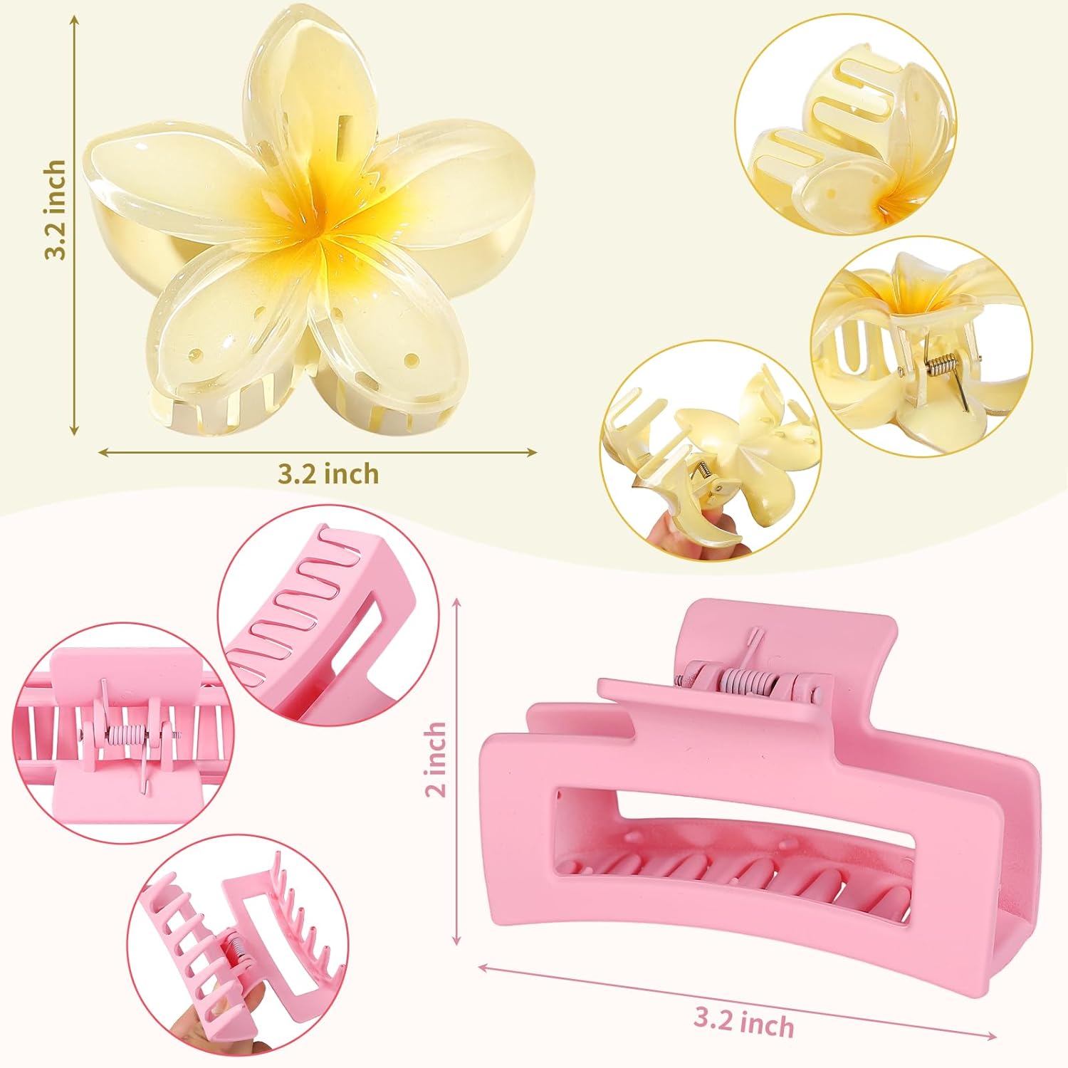 - 【Flower Claw Clips & Square Hair Clips】3 flower claw clips. Perfect for Summer Vacation. 3 Square Hair Clips for Daily Use.