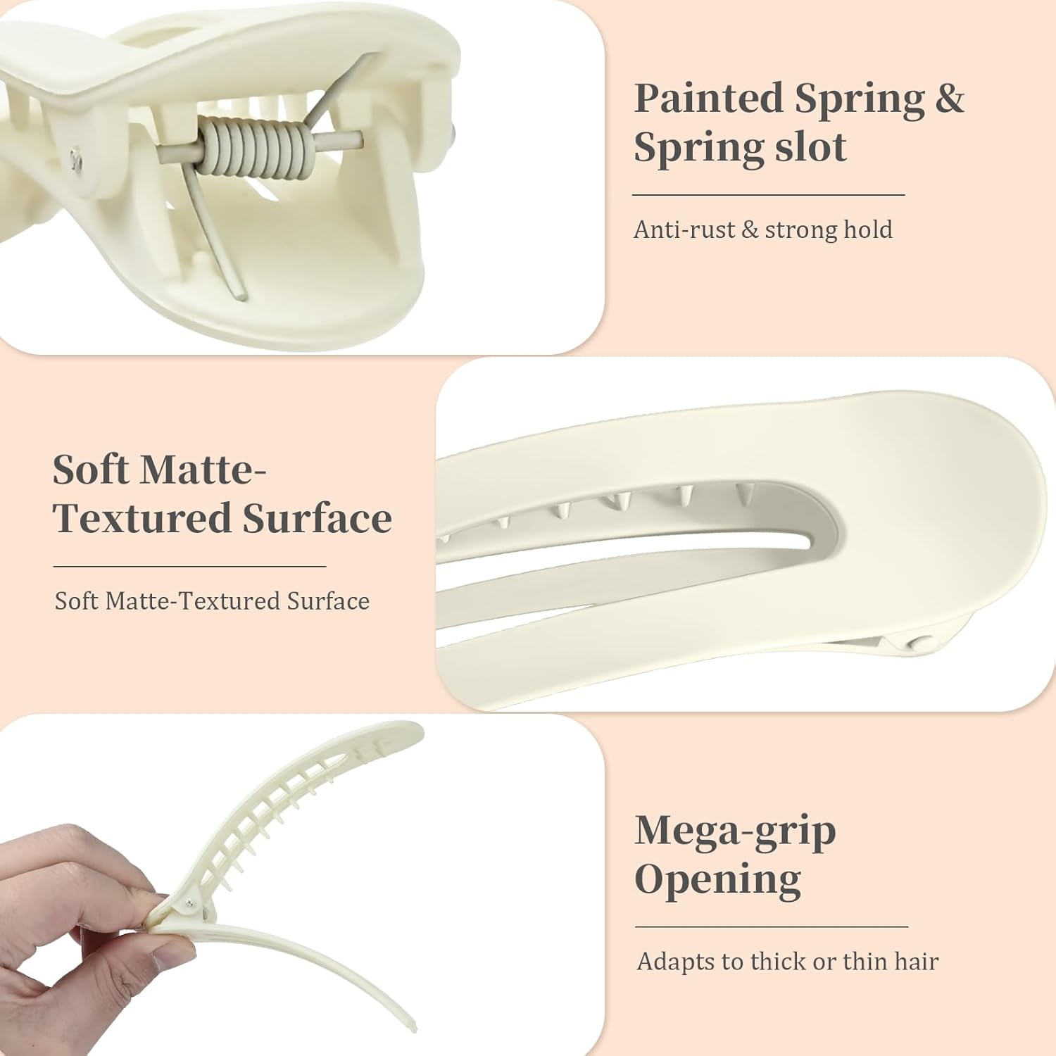 10 Pcs Flat Hair Clips, Lay Flat Claw Clips for Women Thick Thin Curly Straight Fine Hair, Matte Non-slip Big Hairclips for Daily Use Decotations, Strong Hold & Comfortable All Day, L 4.3In