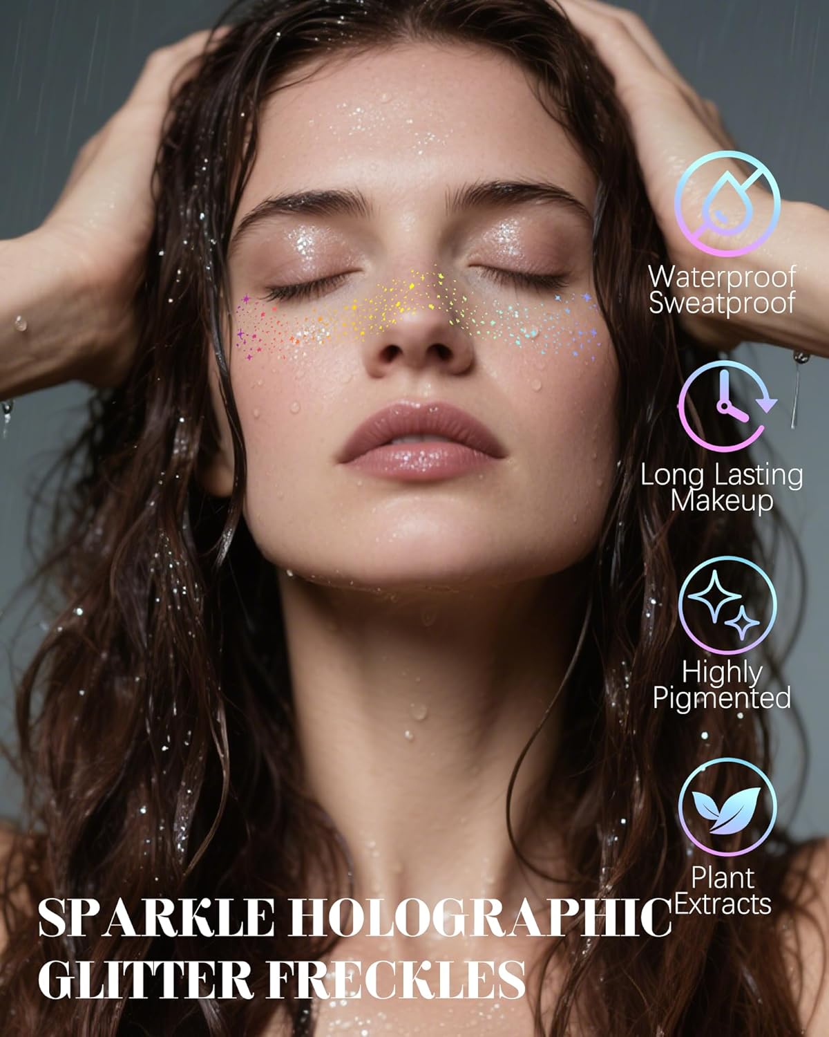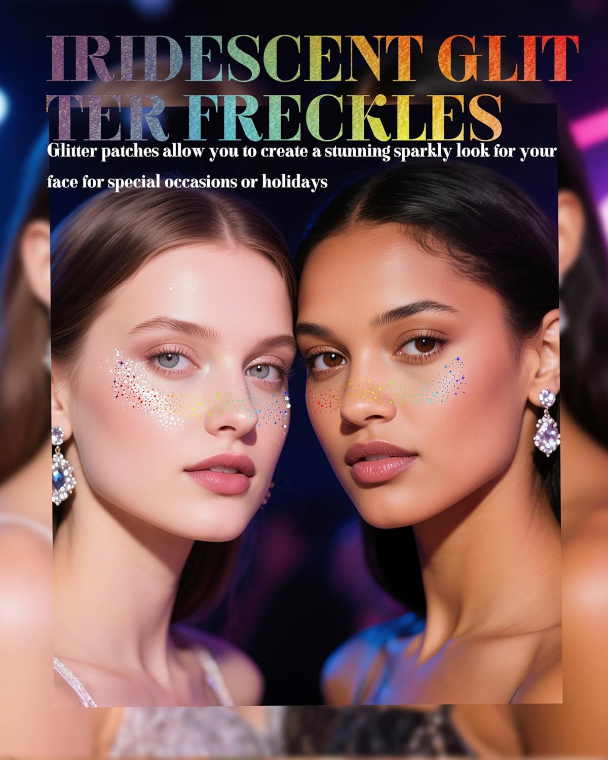 Makeup Patches, Holographic Multichrome Stickers Temporary Face Tattoos, Body Face Glitter for Women Girls, Country Concerts Singer Festival Rave Accessories (iridescent - 10 pcs)