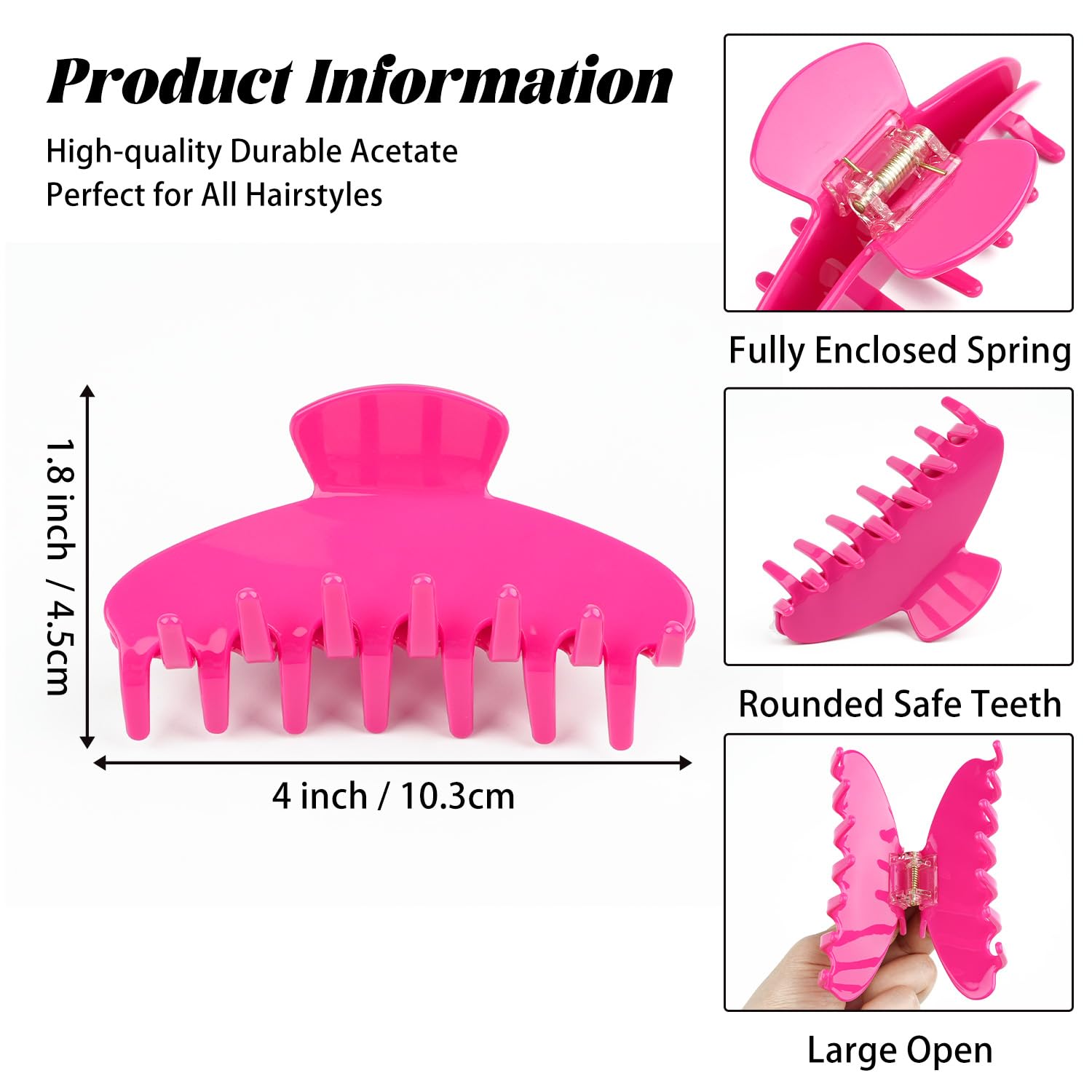 - ✅ Strong Hold for Thick & Thin Hair: This 4-inch big hair claw clip features a reinforced spring and wide grip, offering a secure hold for both thick and thin hair types. No slipping, no tugging—just effortless, all-day styling