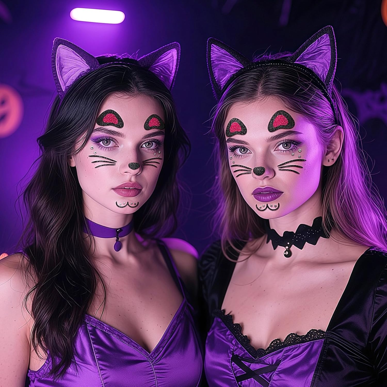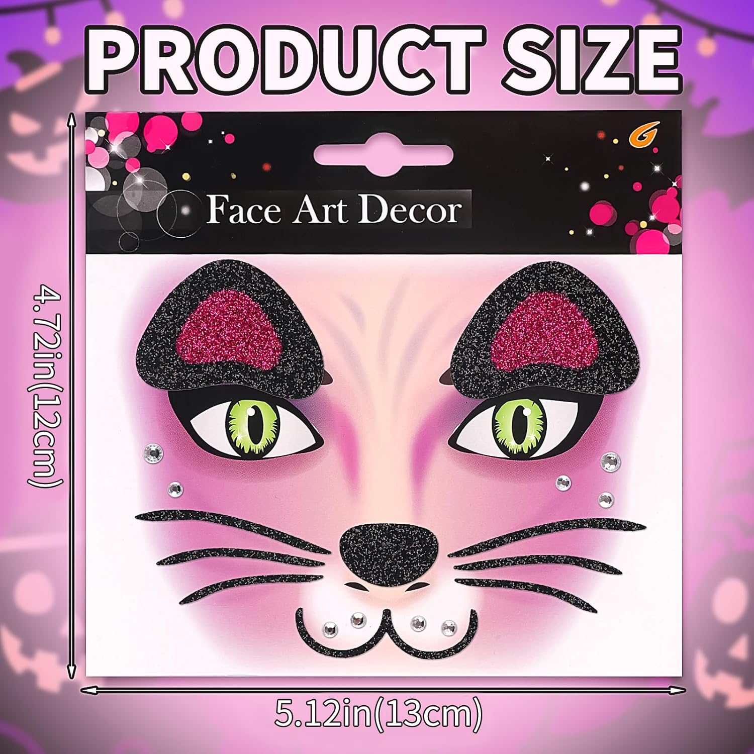 Face Stickers Gems Halloween Temporary Tattoo Sticker Animals Face Sticker Decal Body Face Self-adhesive Sticker Stage Makeup Party Cosplay Decoration 2pcs (cat)