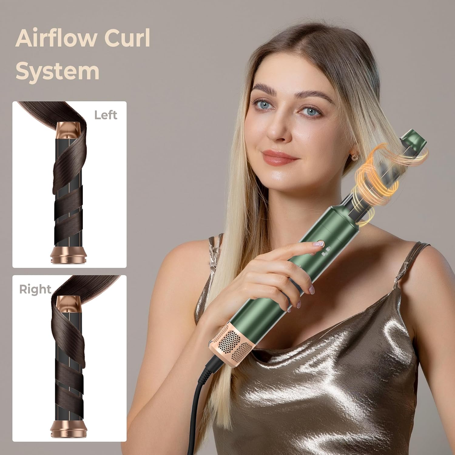 - 7-in-1 Air Curler for Hair Set: Tame Your dressing table, end countertop clutter and the outlet struggle. 7 in 1 hair dryer brush set hair station consolidates hair tools you need into a single one, Achieve hairstyle effortlessly, 2 x air curling iron wrap, 1 x hair dryer head, 1 x concentrator, 1 x hair dryer with diffuser, , 1 x straightening brush, 1 x round brush blow dryer, the air styler wrap that makes fast curl, straight, dry, volumiz, massage skin.