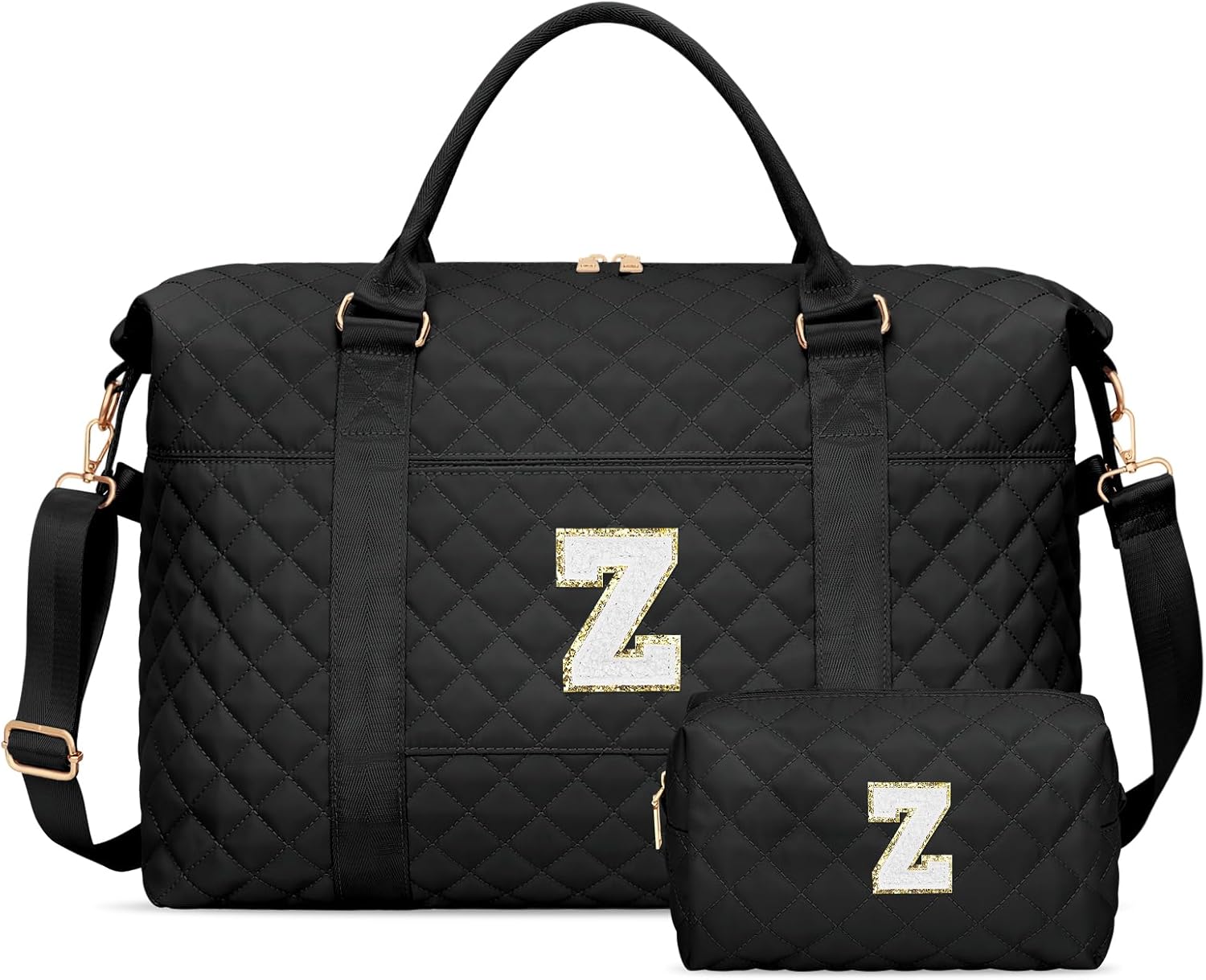 - Personalized Initial Weekend Bag: Our weekend bag features personalized initials, you can choose your initials or give them to others as gifts, which makes them feel warm. Includes a matching toiletry bag with the same letters for storing cosmetics and travel essentials