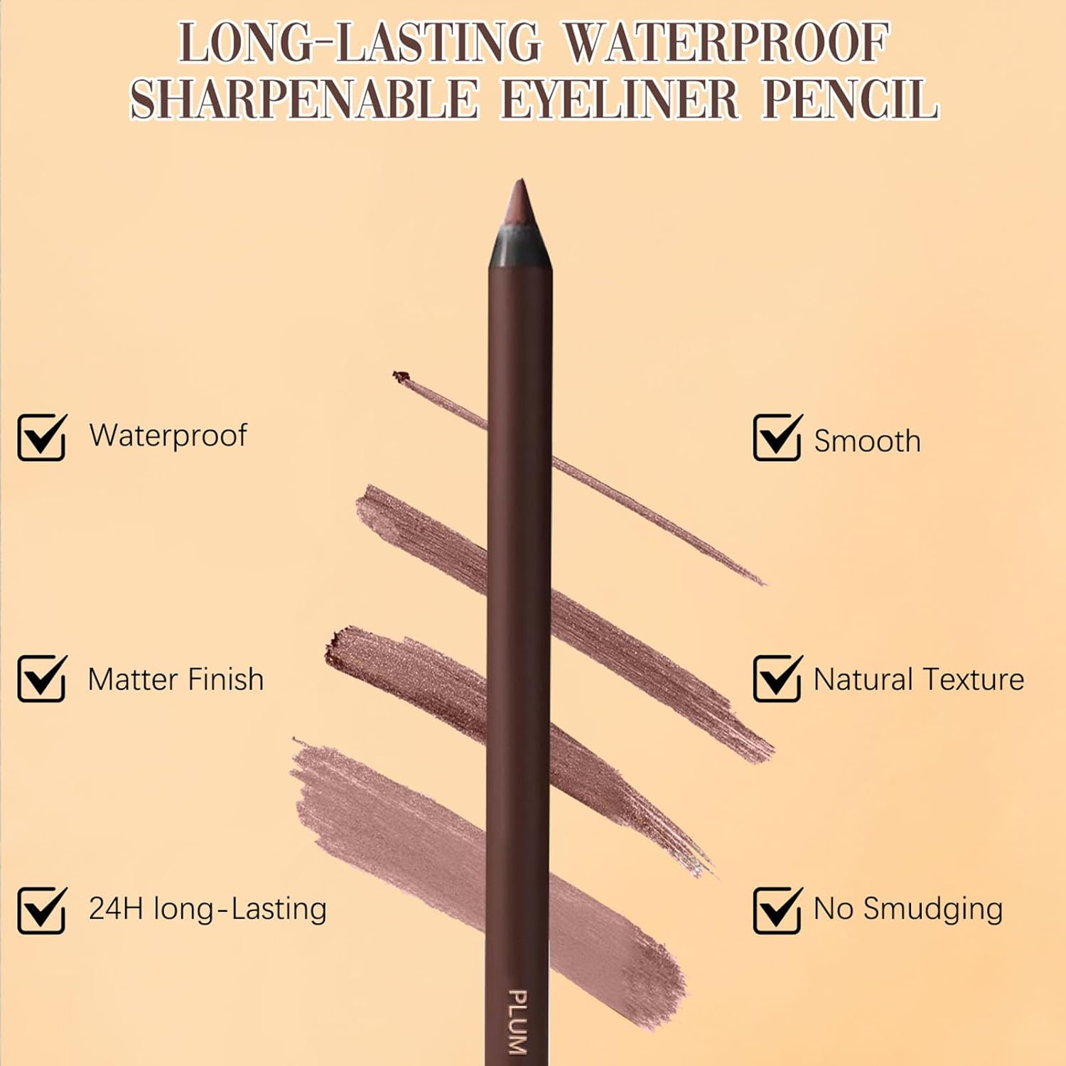 24 Hr Waterproof Eyeliner Duo Sharpenable Eye Pencil, 2025 New Persona Eyeliner Pencil Waterproof, No Smudging, No Fading, Long-Wearing, Smooth and Easy To Color (Plum)