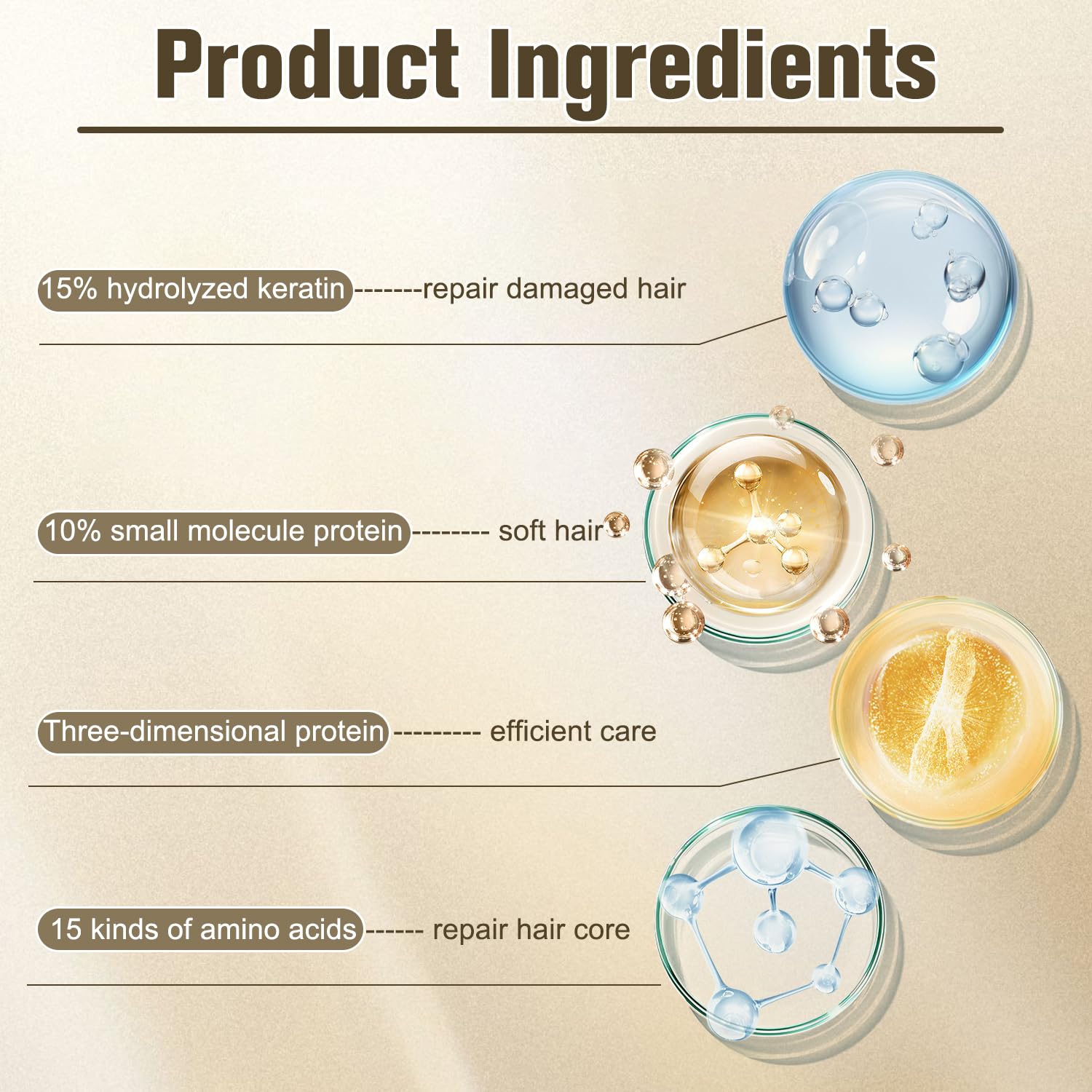 - Keratin Hair Mask:The main ingredient of our no-wash hair mask is keratin, which instantly replenishes hair nutrition, reduces hair breakage and split ends, and enhances hair strength