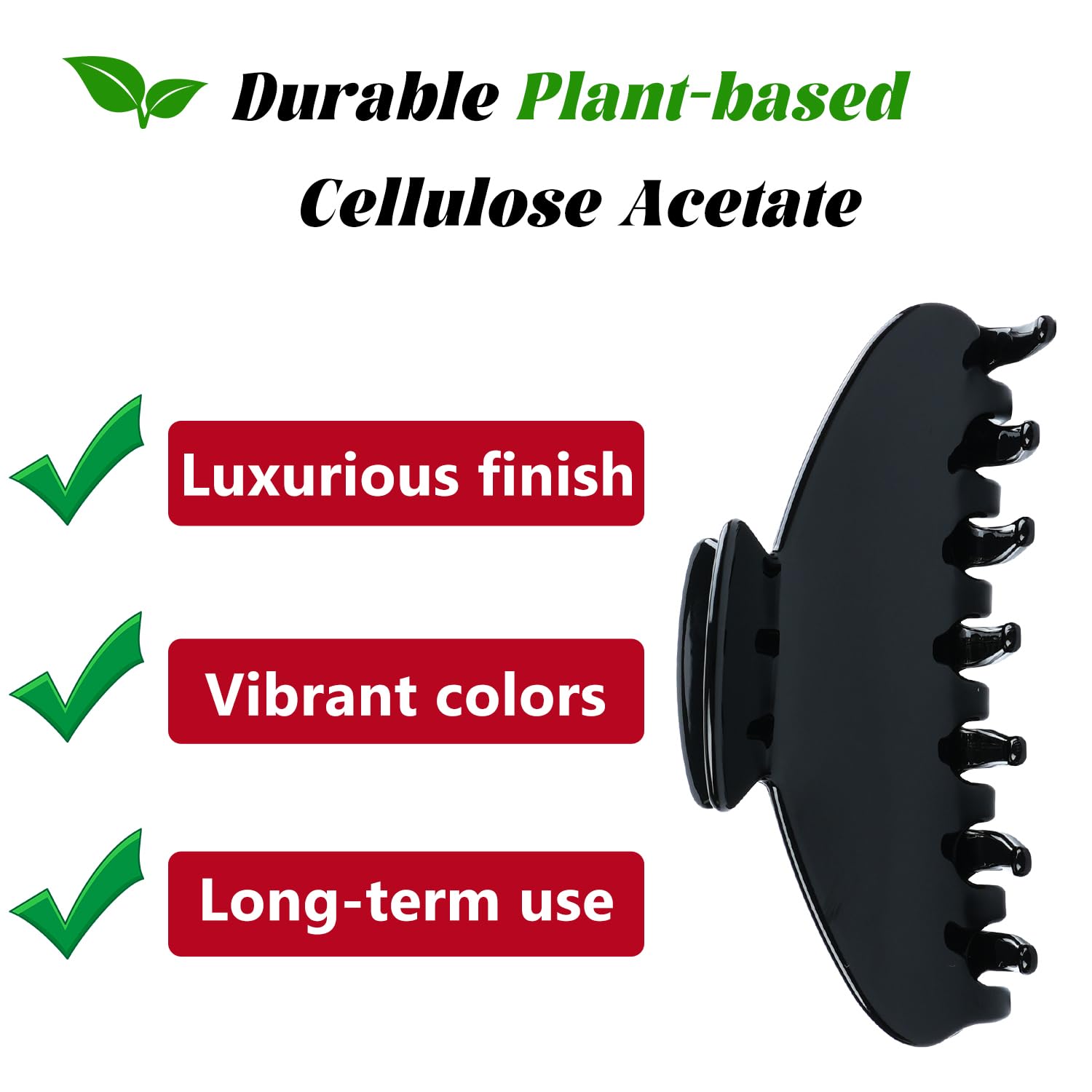 - PREMIUM ACETATE MATERIAL: Made from high-quality plant-derived Cellulose Acetate, this claw clip is more flexible and longer-lasting than regular plastic clips. Known for its smooth texture and gentle feel on hair, it offers a refined, everyday alternative to petroleum-based plastics