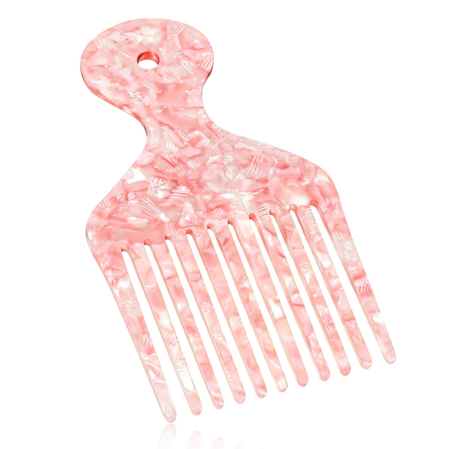 Hairs Picks for Women Curly Hair Wide Tooth Hair Pick Comb, Pink Long Tooth Hairs Comb for Long Thick Curly Hai Detangling Lifting Combs for Women Men Anti Static Hai Styling Tool, 4.8 Inches