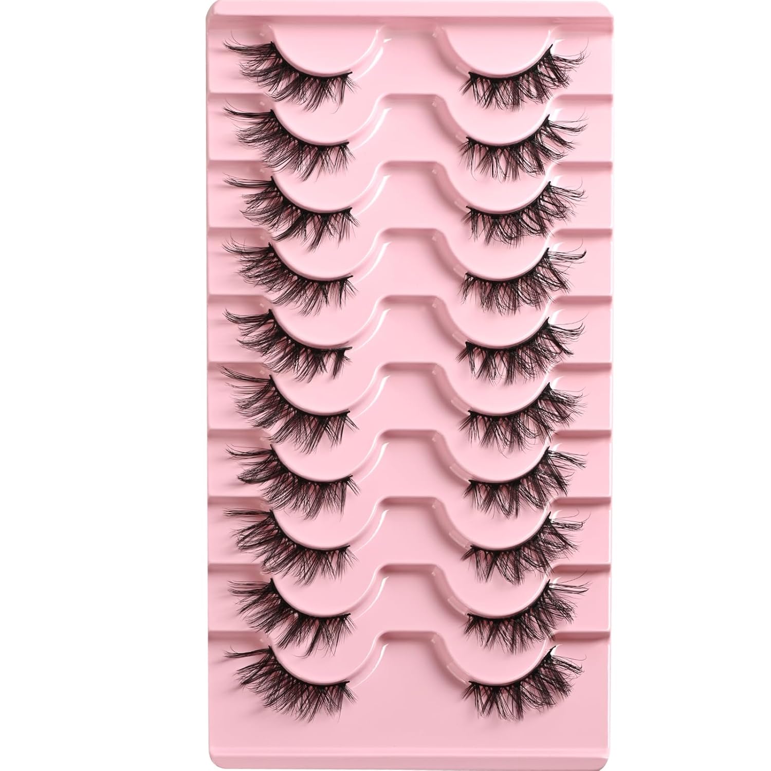 FARRED Half Eyelashes Natural False Lashes Wispy Cat Eye Strips Eyelash 10 Pairs Faux Mink Strip Eye Lashes Pack for Daily Makeup (C10 | 8-15MM)