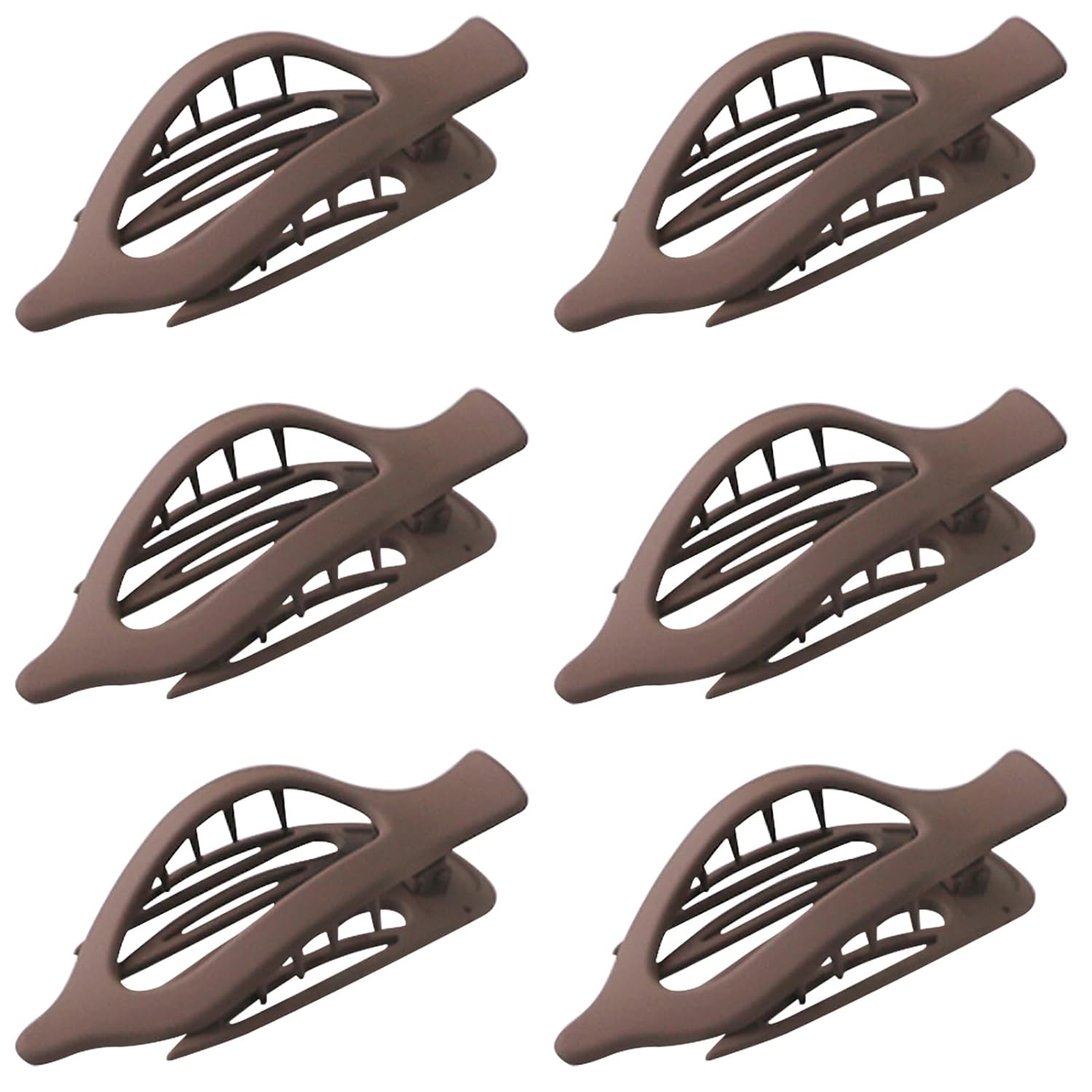 6 Pack Flat Hair Claw Clips for Women Duck Billed French Lay Down Hair Barrettes Accessories 100% Polycarbonate Matte Dark Brown